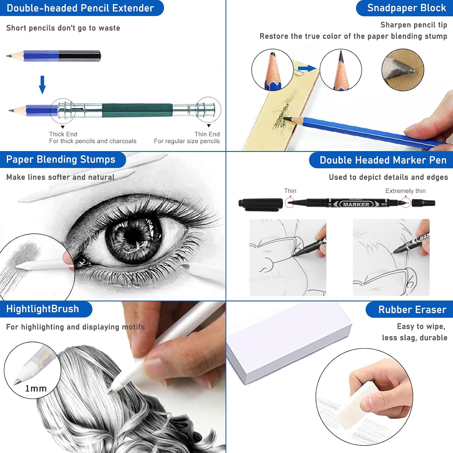 - Portable and Easy to Carry: Our pencils set contains all the pencils that you need in a zipper case, with individual slots for each pencil and drawing tool, helps you find and organize your pencils and tools easily, well protects them from damage. Zipper case sketch book and pencils set is easy to carry around, which is a portable art supplies in your daily life.