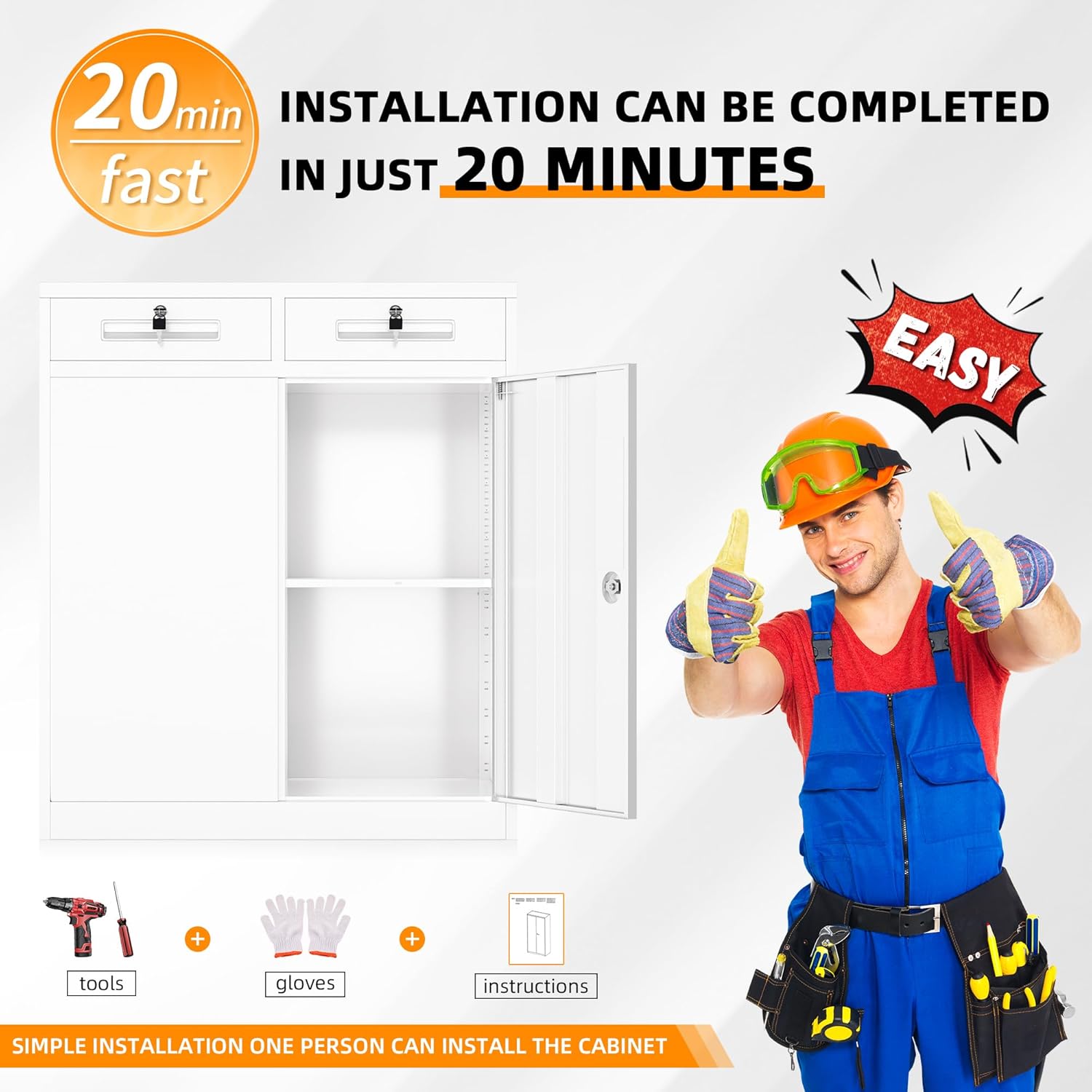 - 【Humanized and Practical Design】The shelves of the office storage cabinet can withstand a weight of 180 LBS, which is suitable for storing some heavy household tools.The size of the tool cabinet is 36"H* 32"W* 16"D, which is suitable no matter where it is placed. The appearance design of the cabinet is very concise and beautiful, with multiple colors and sizes. Durable and beautiful file cabinet have different storage spaces, making it easier for you to access them while working