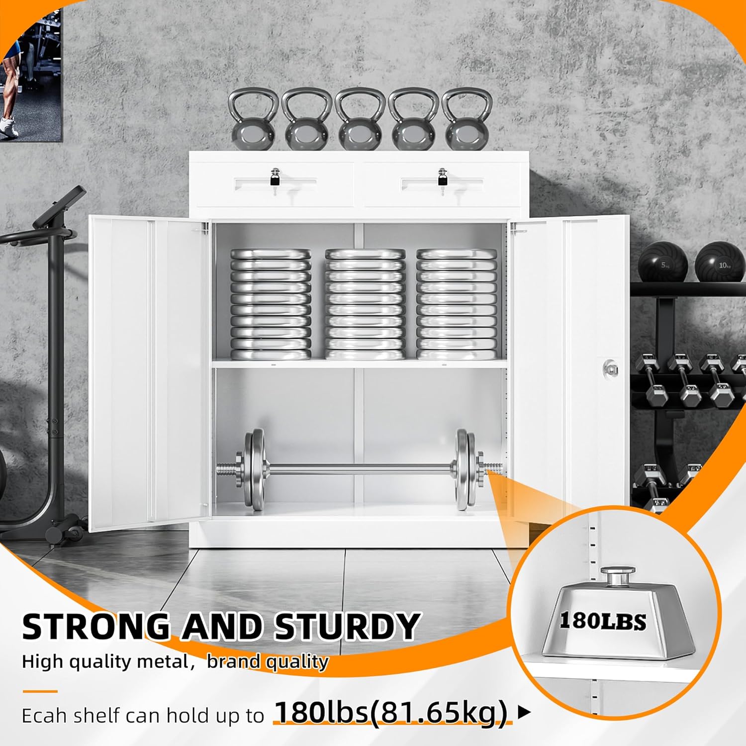 INTERGREAT Metal Cabinet with Drawers, Lockable Metal Storage Cabinets with Doors and Shelves for Garage, White Locking Garage Storage Cabinets 36"×32"×16"