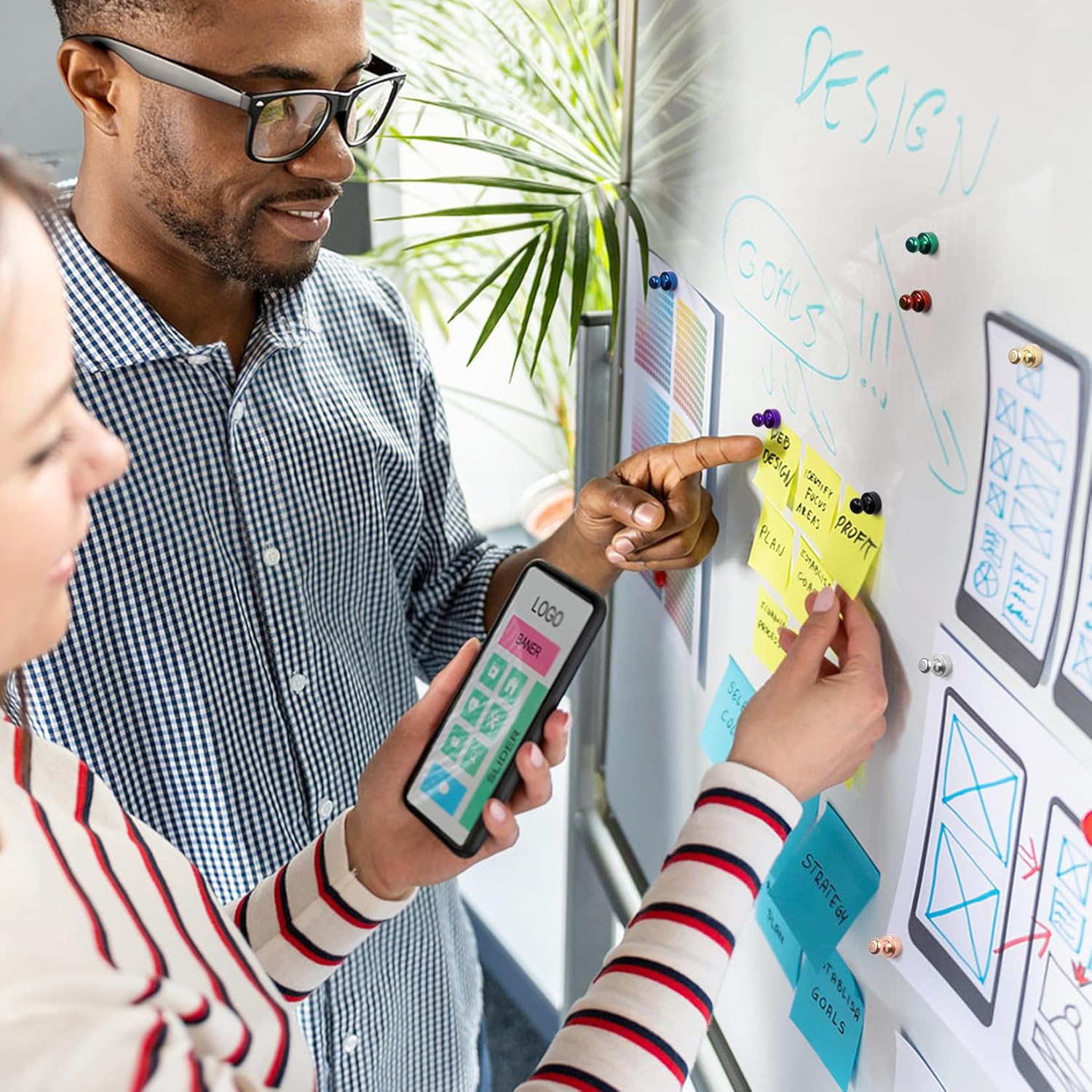- SMALL BUT POWERFUL: These colorful whiteboard magnets may be compact but offer reliable strength. The fridge magnet can typically hold about 15 sheets of paper or 30 sticky notes, making organization simpler