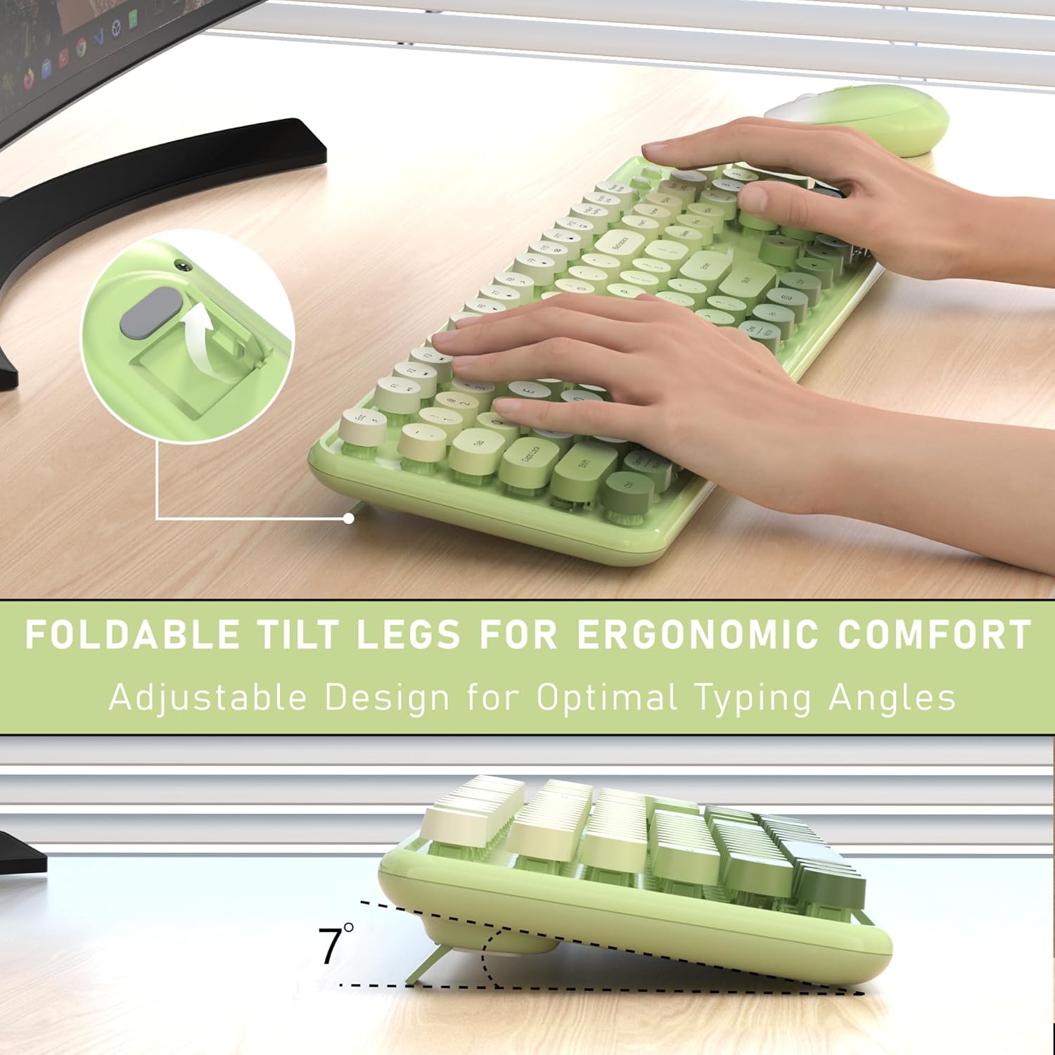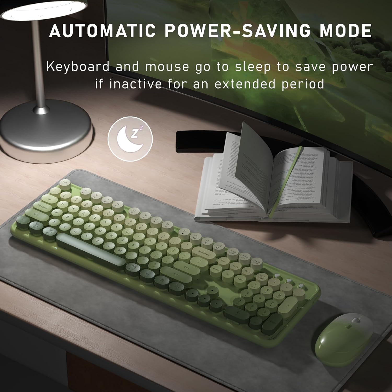 Wireless Keyboard and Mouse, Full-Size Retro Typewriter Keyboard with Round Keycaps, 2.4GHz for Windows, Mac, Laptop, PC, Desktop (Green Gradient)
