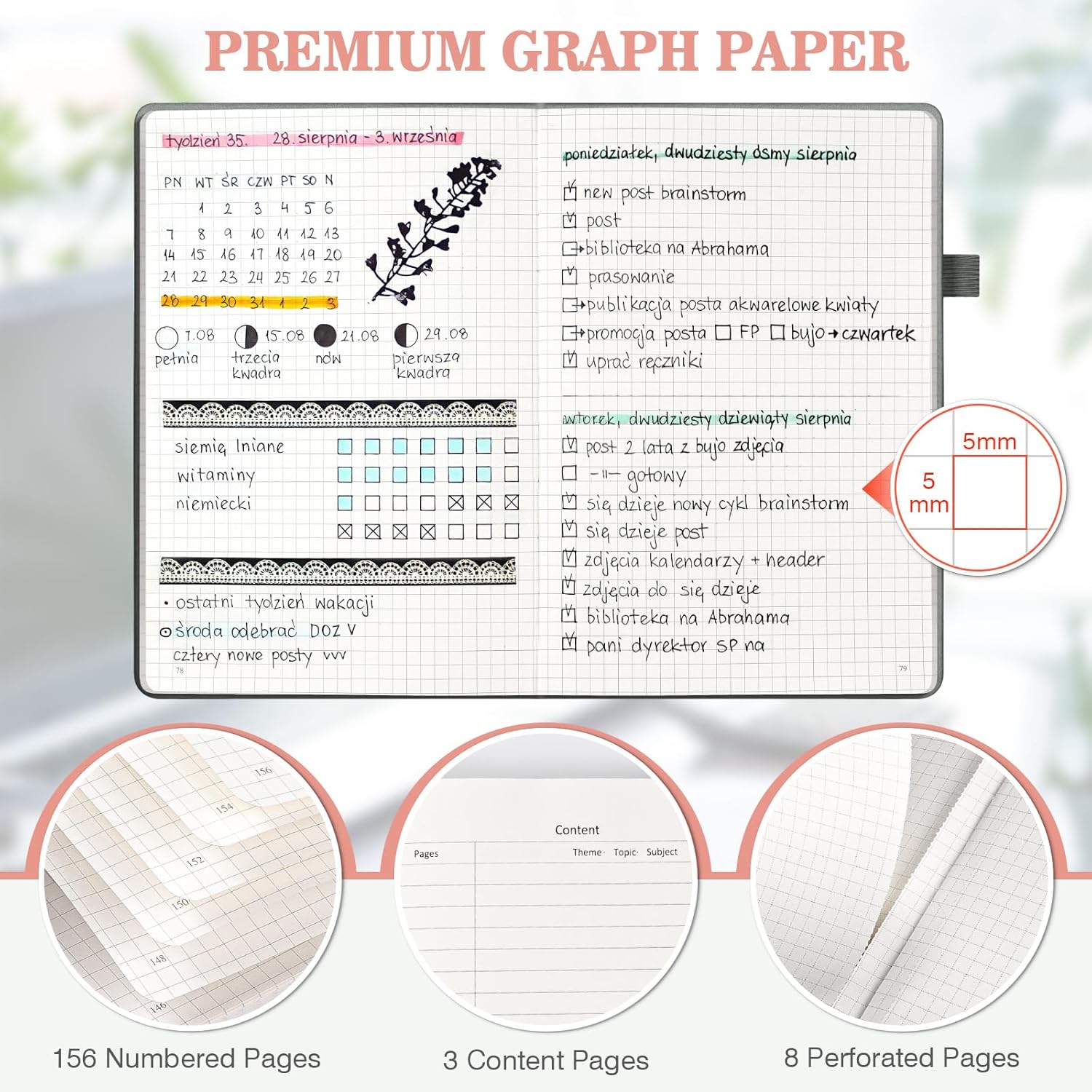 - 【Thoughtful Accessories】Complete with practical accessories, each grid notebooks includes 2 pockets, 2 bookmark ribbons, 1 elastic band, and 1 pen loop. Additionally, each set comes with 2 free grid journal notebook stencils featuring various graphics, letters, and numbers, enhancing creative possibilities for planning, documenting work, or artistic endeavors.