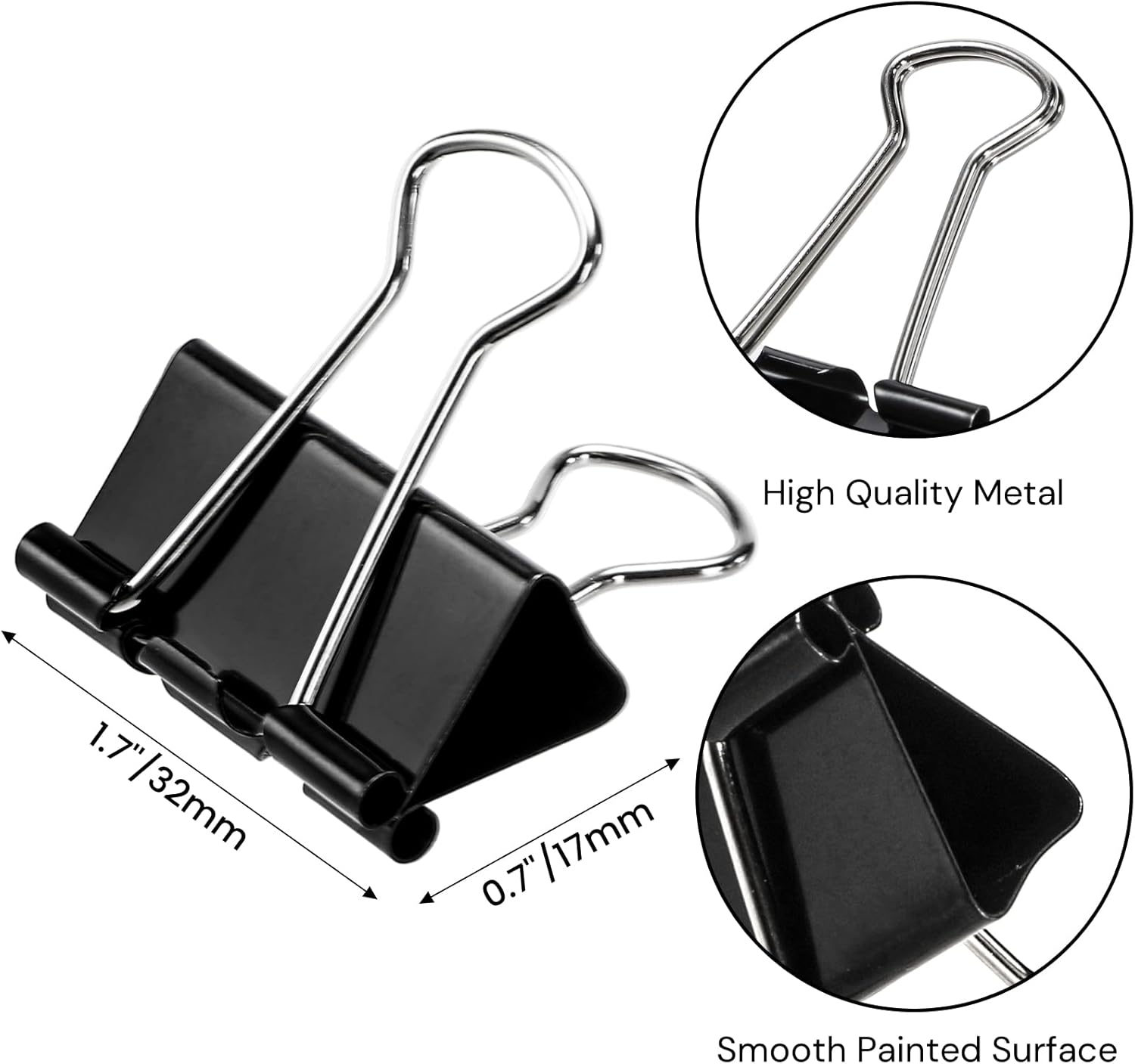 300 Pack Medium Binder Clip, 1-1/4 Inch Metal Black Fold Back Clips, Standard Paperwork Clamp Bulk for School Teacher Student, Business Office Home