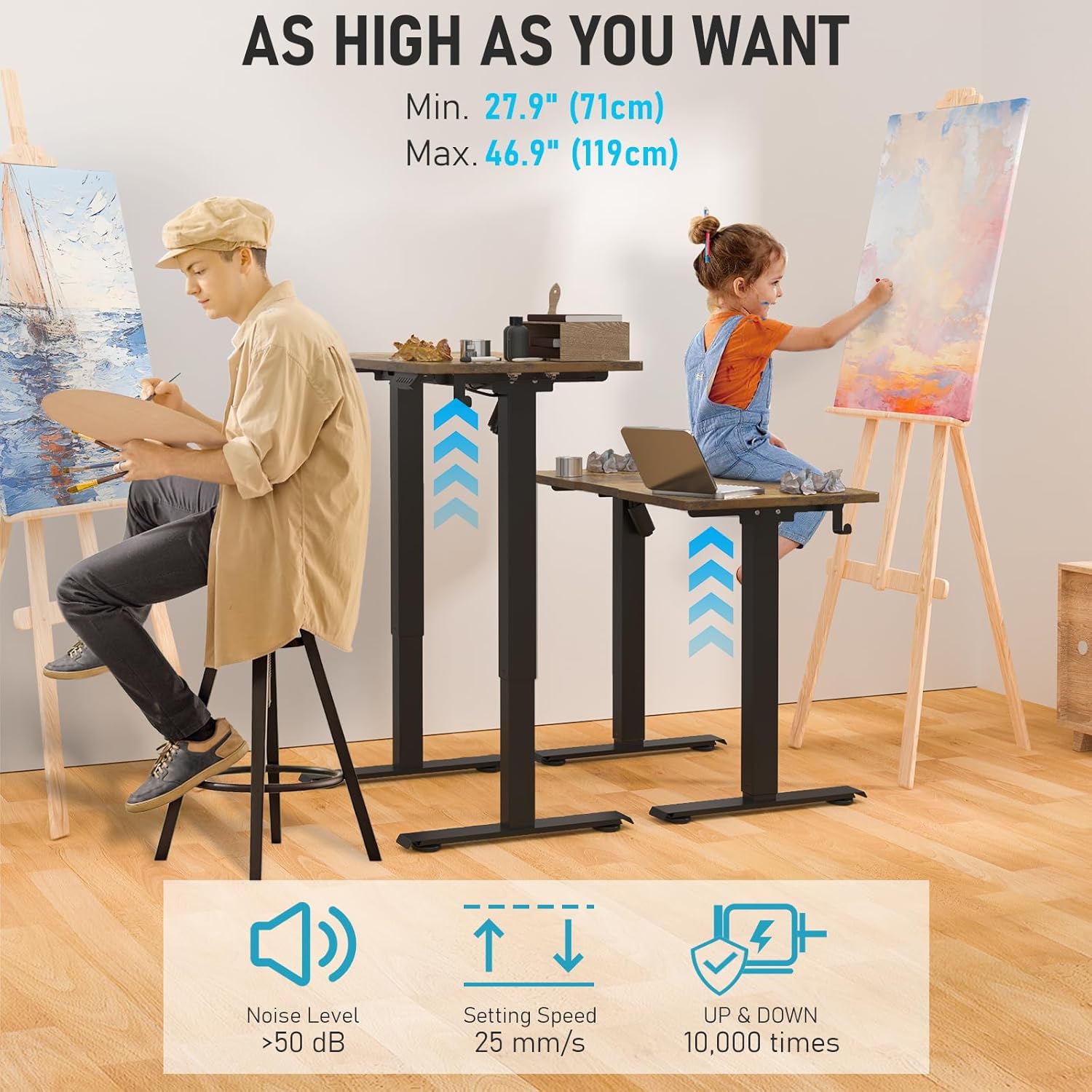 - Smooth Height Adjustment: Freely select electric standing desk height, from 27" to 46.5". Save your favorite three settings and smoothly switch between them