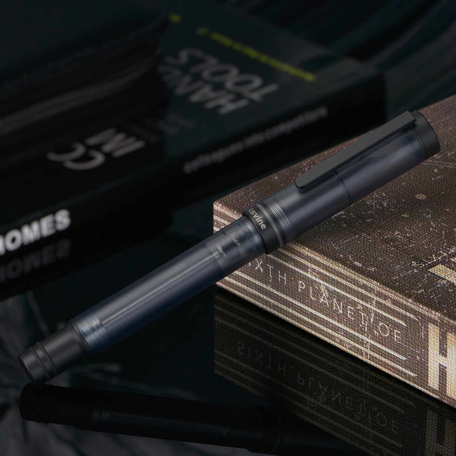 Asvine V200 Titanium Fountain Pen Vacuum Filling, Matte Black Fine Point Transparent Acrylic Smooth Writing Pen Case Set