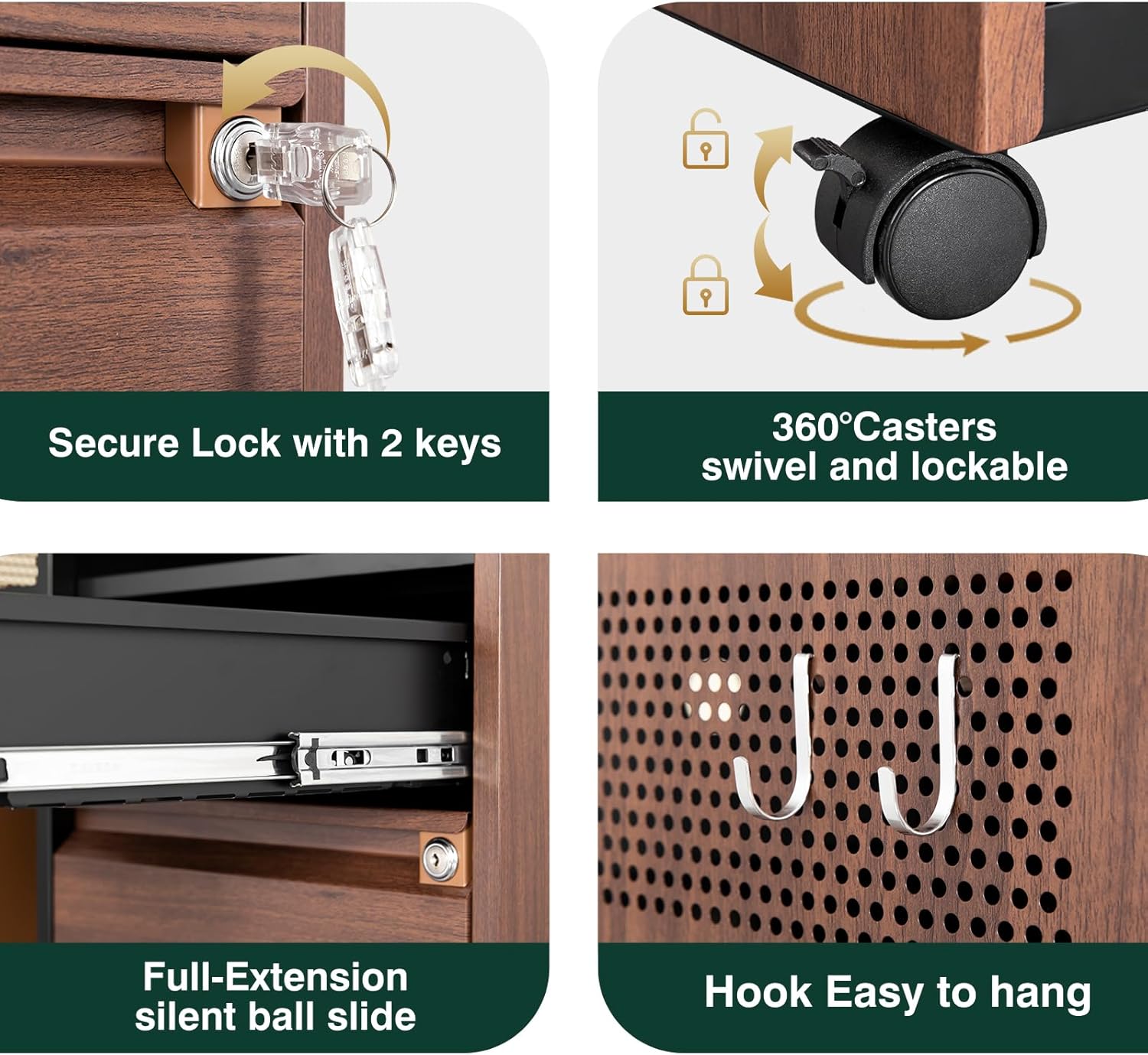 - 【Easy to Move and Assemble 】Cabinet is equiped with four rolling wheels. The left side two casters is lockable casters to keep the product in place and stable. The mobile file cabinet can fix or move around your home office freely. The lateral file cabinet can be assembled quickly and easily by one person and features a convenient and uncomplicated installation procedure with all properly labeled components and installation instruction video and manual.