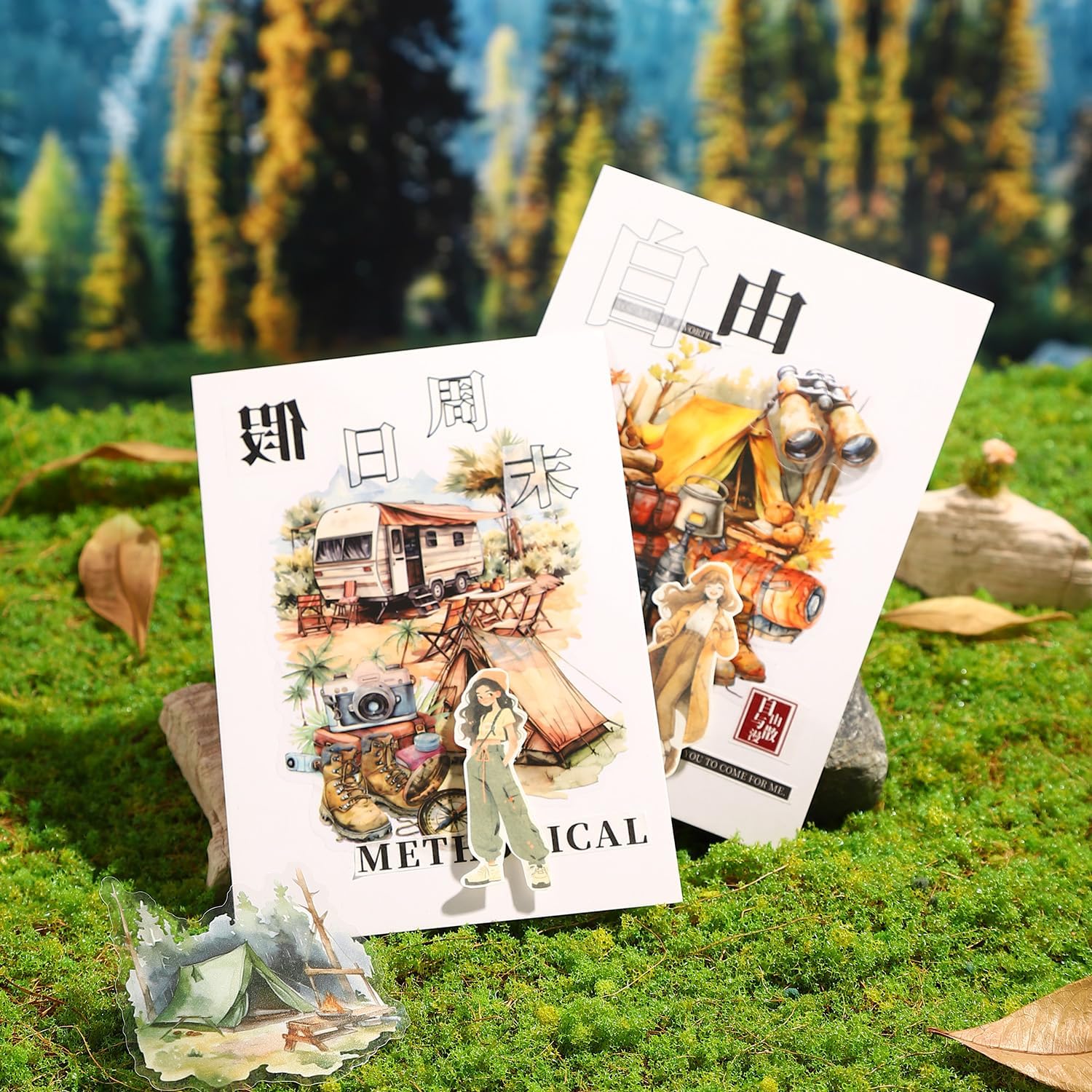 - Explore Nature’s Charm: Immerse yourself in the outdoors with our Forest Journey PET sticker set. Featuring 120 pieces across 6 distinct camping-themed designs, these stickers bring the serene beauty of nature into your scrapbooks, journals, and creative projects