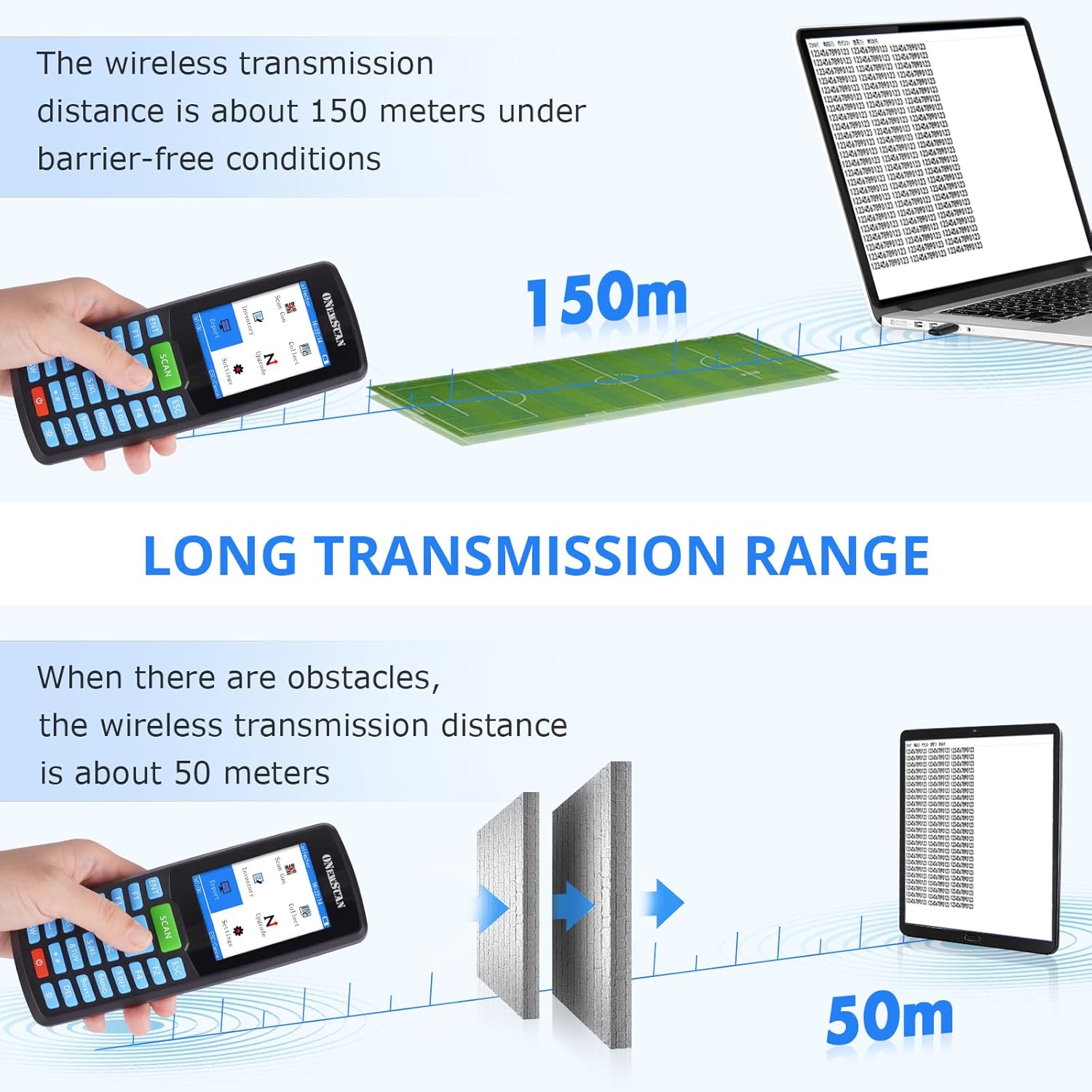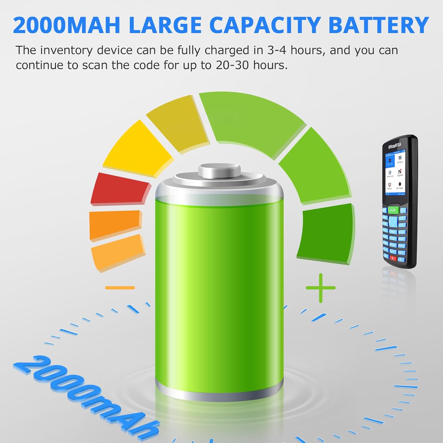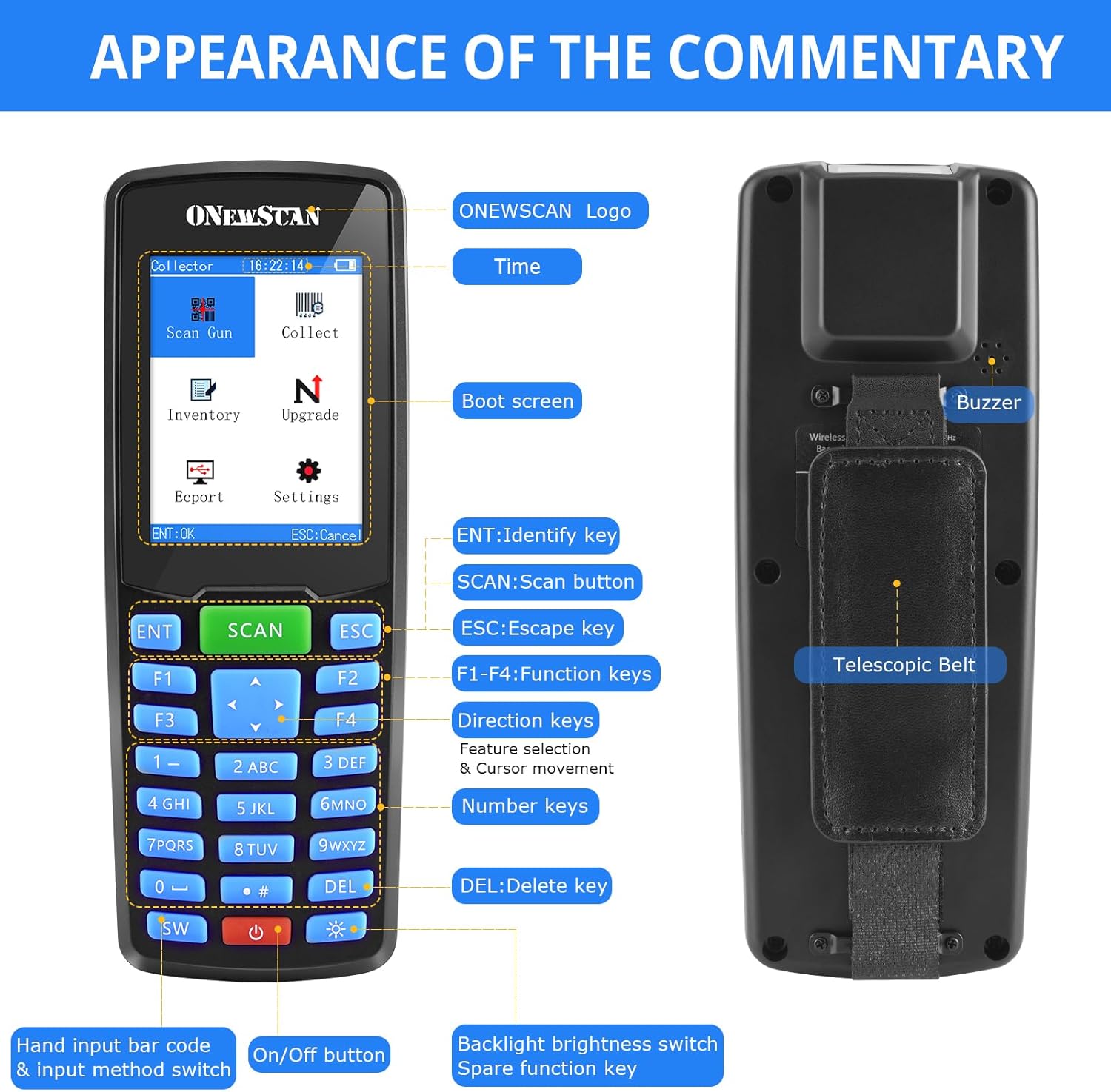 Barcode Scanner, Wireless 1D Inventory Scanner Data Collector Data Terminal Portable with 2.8" TFT Color LCD Screen Cordless Handheld Barcode Reader for Store, Inventory, Supermarket, Warehouse