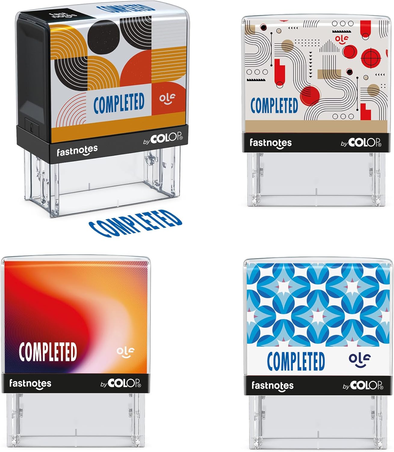 Fastnotes Completed Self-Inking Rubber Stamp by COLOP - Great for Office Documents, Notary, Warehouse, Accounting Paperwork, Business, and Legal Documentation - Blue Ink (Completed- Blue)