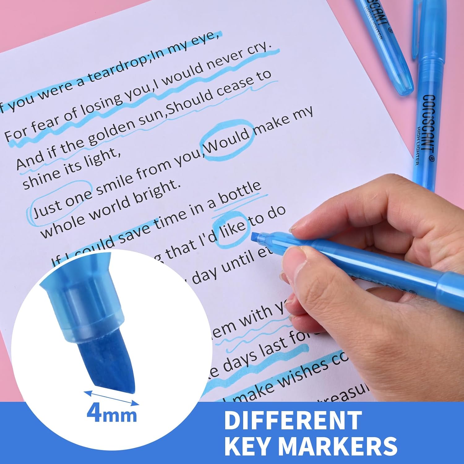 - RELIABLE and SAFE :Highlighter quality meets AMCI standards,non-toxic,and the set contains 32 blue highlighters bulk