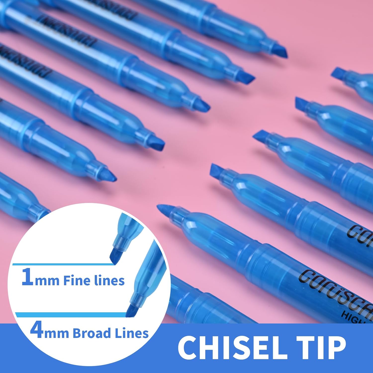 - CHISEL TIP DESIGN: The blue highlighter features a versatile chisel tip that allows for both broad and fine lines, making it perfect for underlining text or highlighting important information