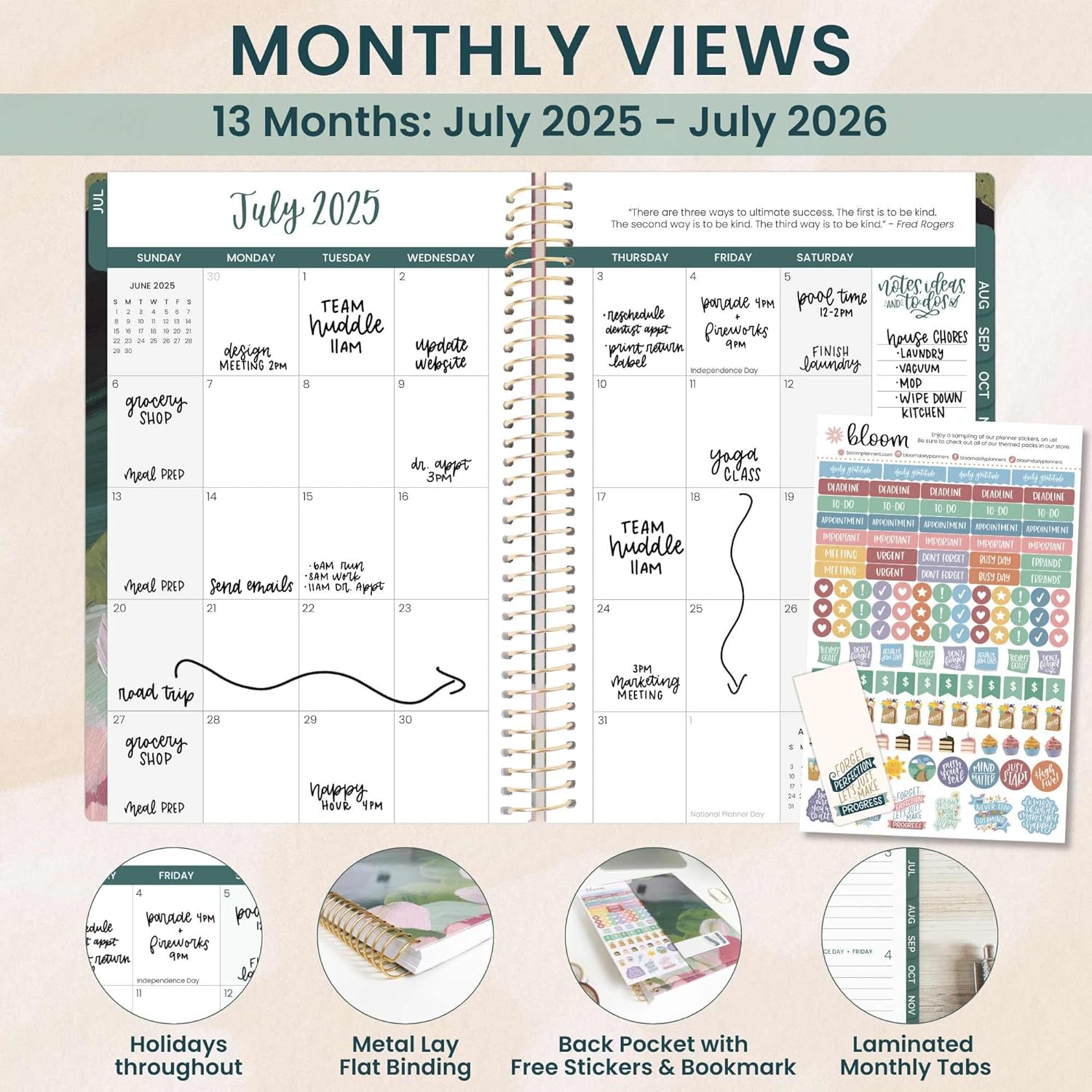 - EFFORTLESS WEEKLY & MONTHLY LAYOUT: This day planner features two-page monthly planner spreads and spacious horizontal weekly layouts, running from July 2025 through July 2026âperfect for tracking your tasks, deadlines, and appointments.