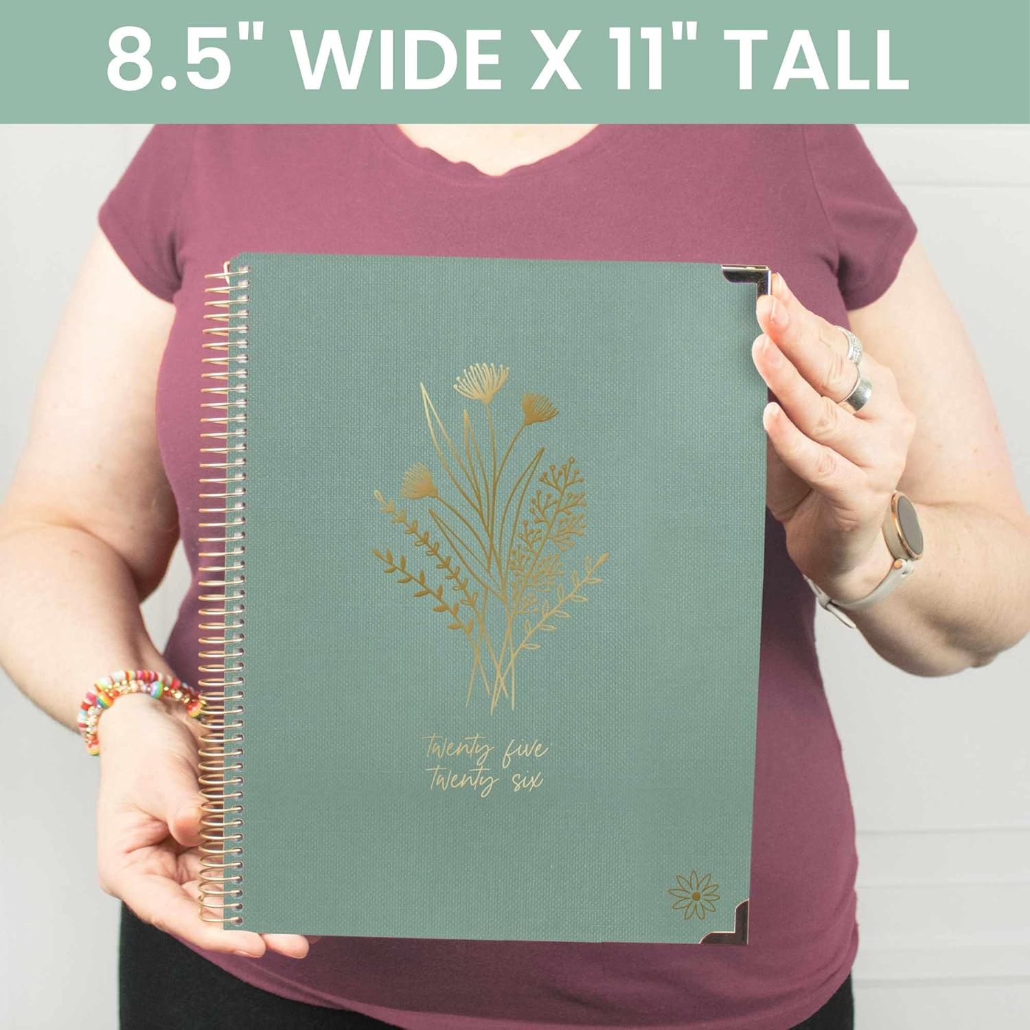 bloom daily planners HARDCOVER 2025-2026 (8.5" x 11") Academic Year Day Planner (July 2025 - July 2026) - Aesthetic Task Goal Organizer - Monthly & Weekly Inspirational Agenda Book - Green Linen