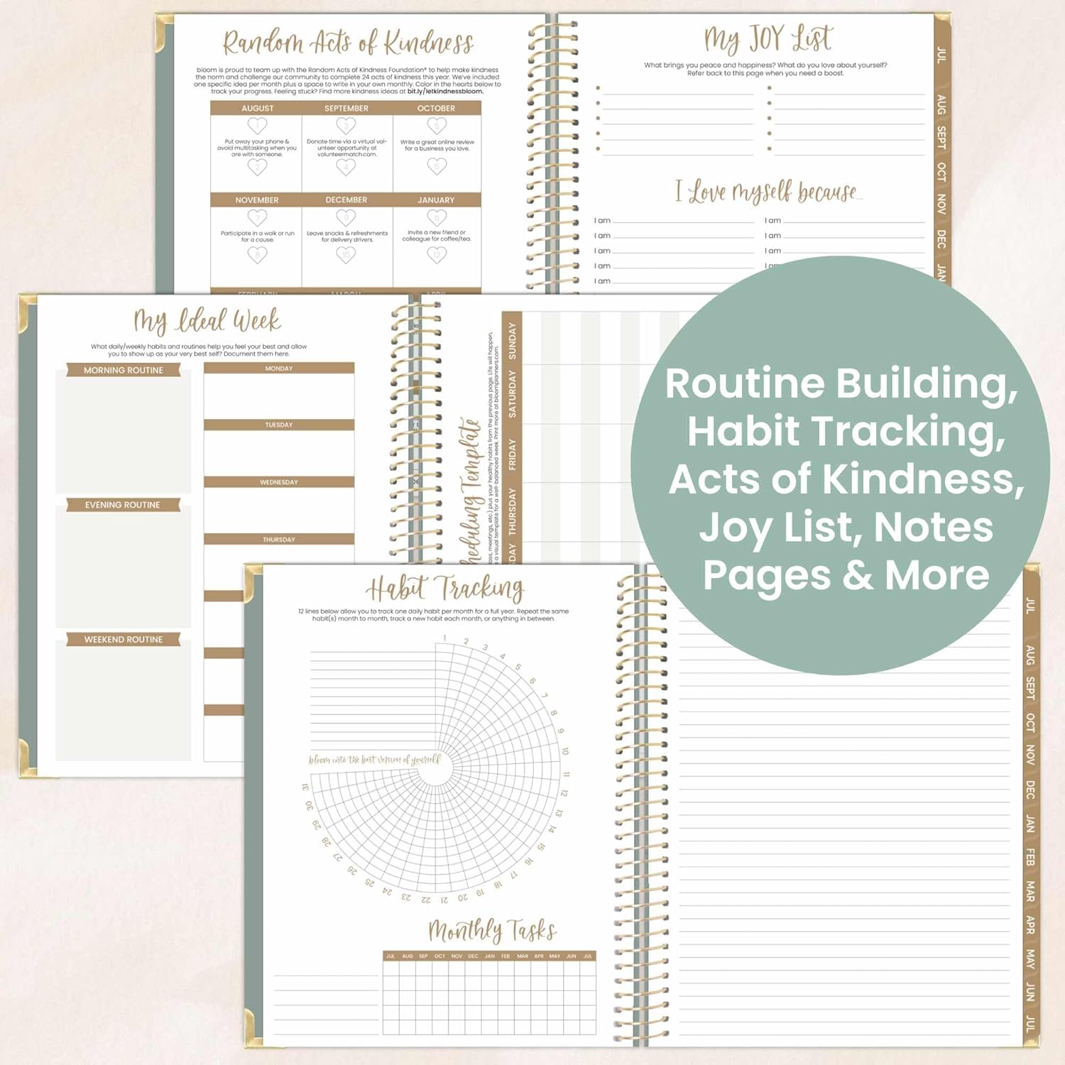 - PREMIUM FEATURES: Sturdy hard cover made of durable chipboard with metal reinforced corners and deluxe linen texture, monthly tabs, thick 100gsm bright white bleed-resistant paper, recyclable metal lay-flat spiral binding, horizontal back inside storage pocket, and FREE magnetic bookmark and stickers included!