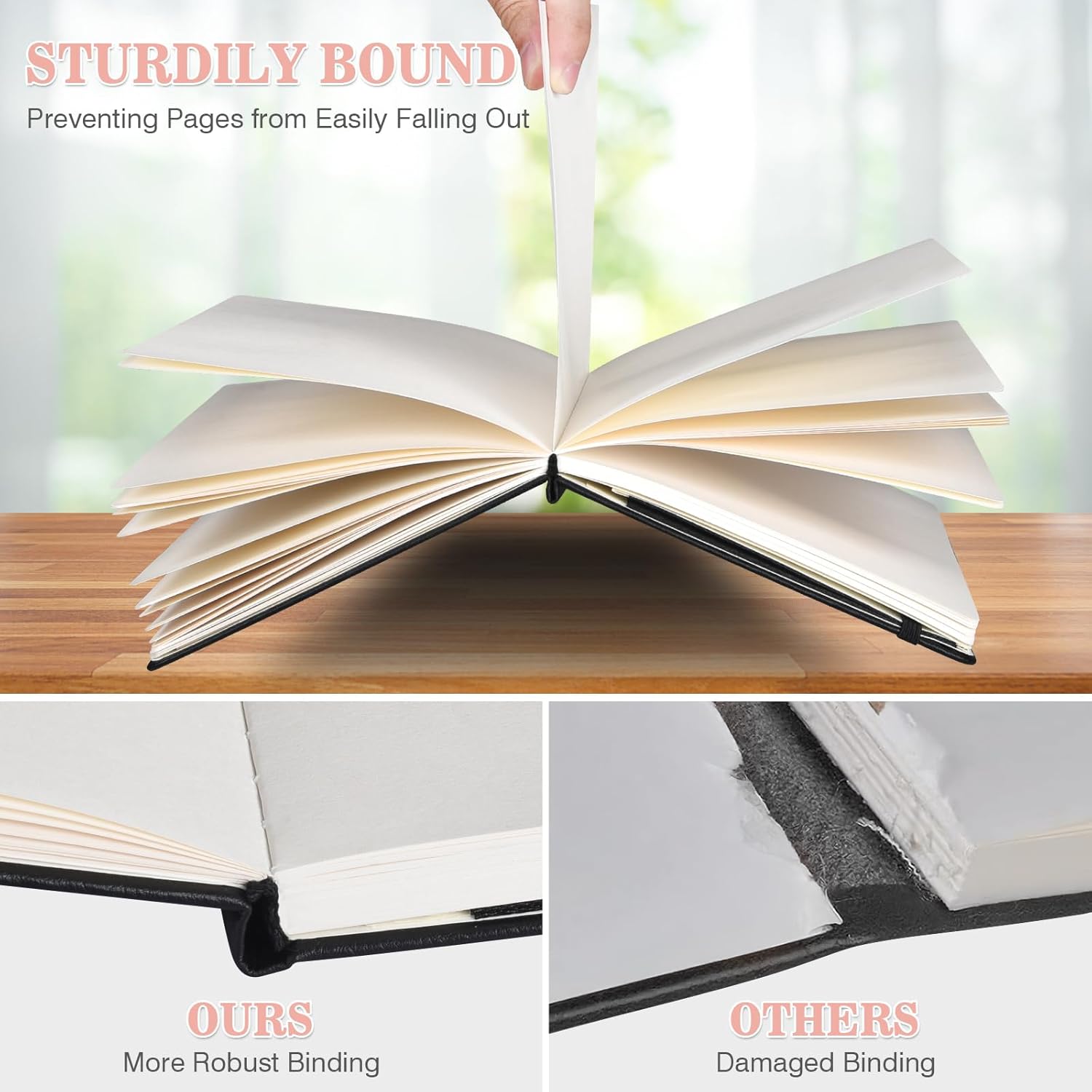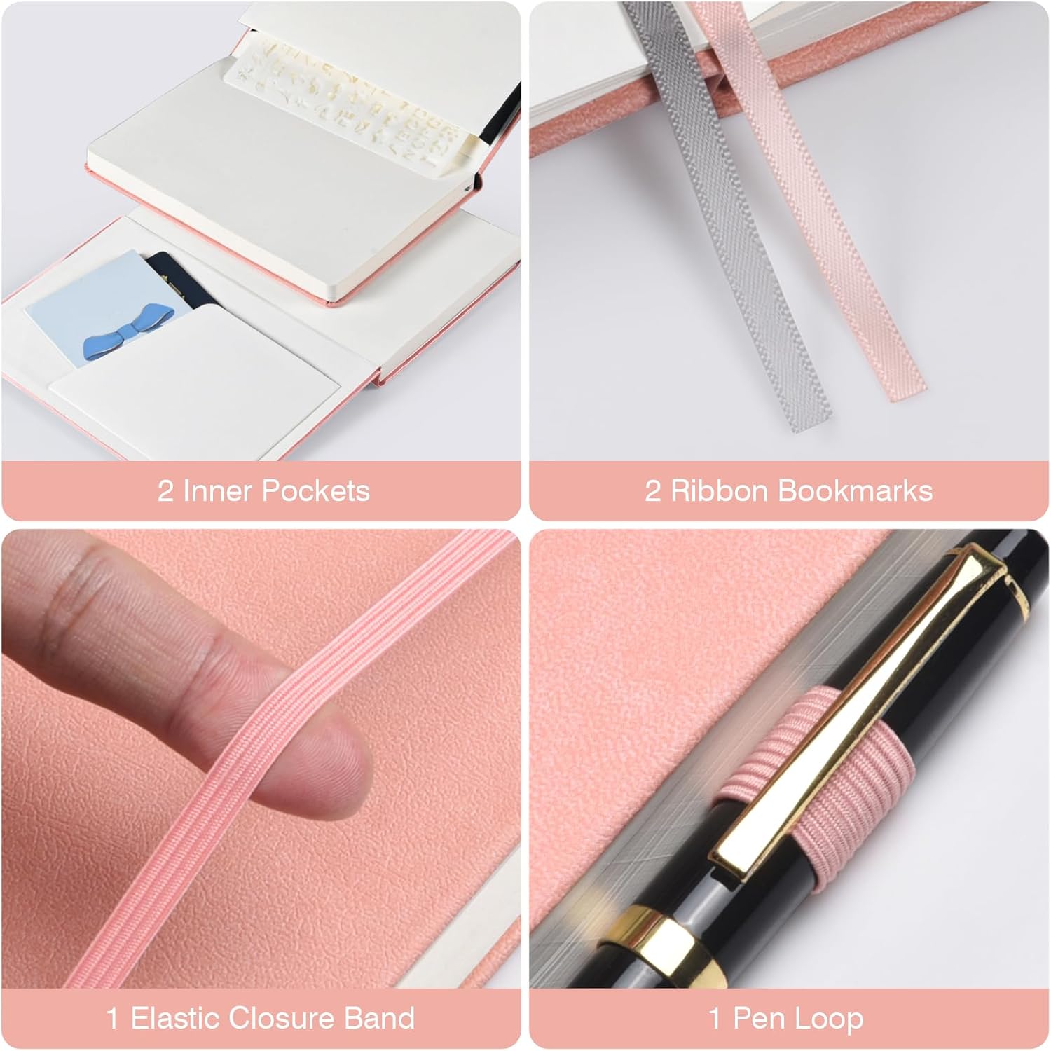- 【Thoughtful Accessories】Complete with practical accessories, each blank page journal includes 2 pockets, 2 bookmark ribbons, 1 elastic band, and 1 pen loop. These additions are designed to enhance your journaling experience and keep your essentials organized.
