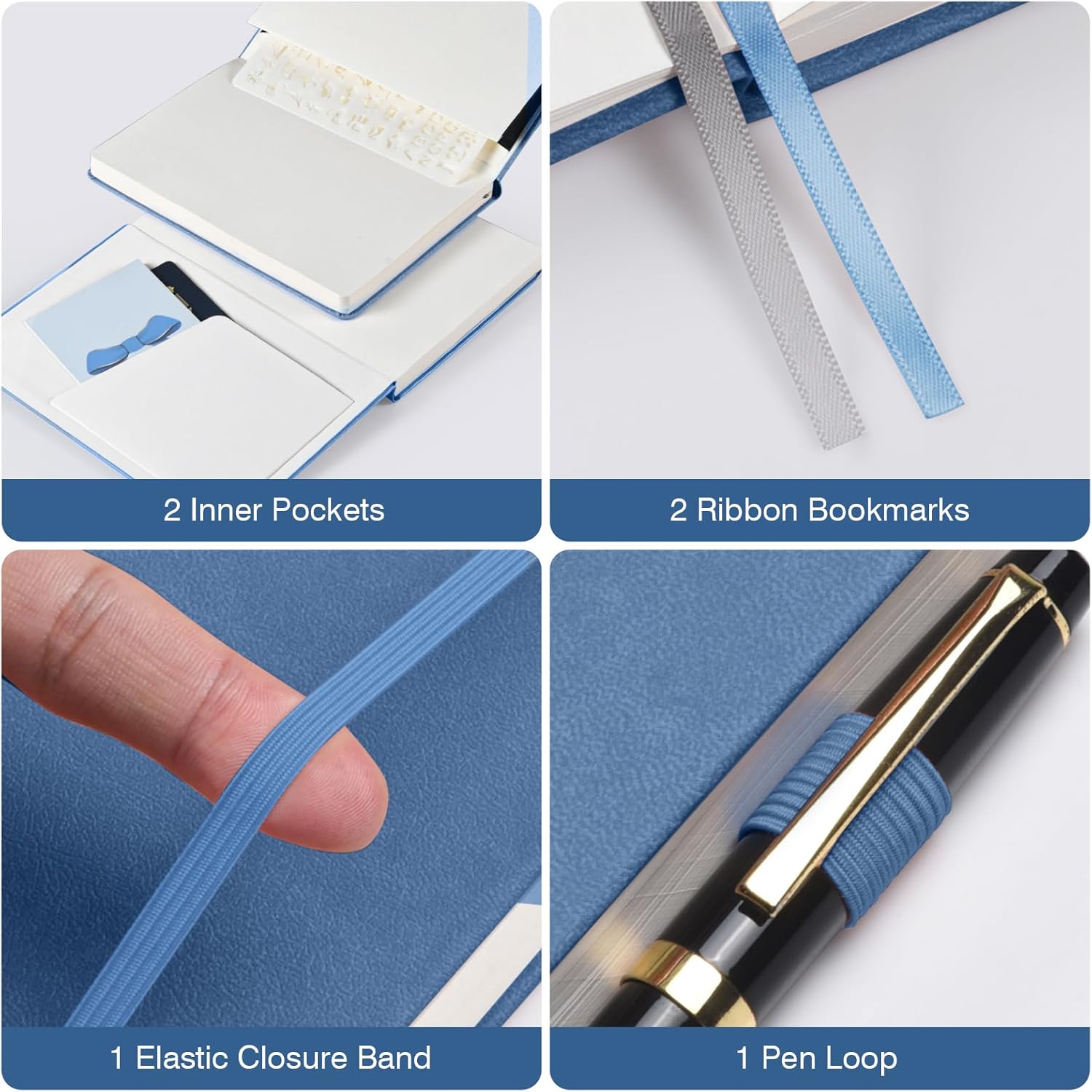 - 【Thoughtful Accessories】Complete with practical accessories, each blank page journal includes 2 pockets, 2 bookmark ribbons, 1 elastic band, and 1 pen loop. These additions are designed to enhance your journaling experience and keep your essentials organized.