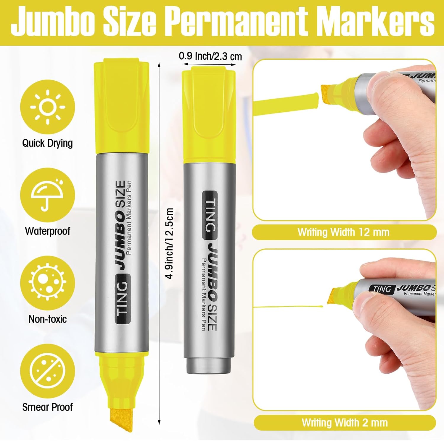 - Works on Various Surfaces: whether it's wood, foil, boxes, poster board, concrete, stone, tile, brick, metal, plastic, vinyl, or wax paper, these jumbo permanent markers bulk can leave firm and prominent marks on various surfaces