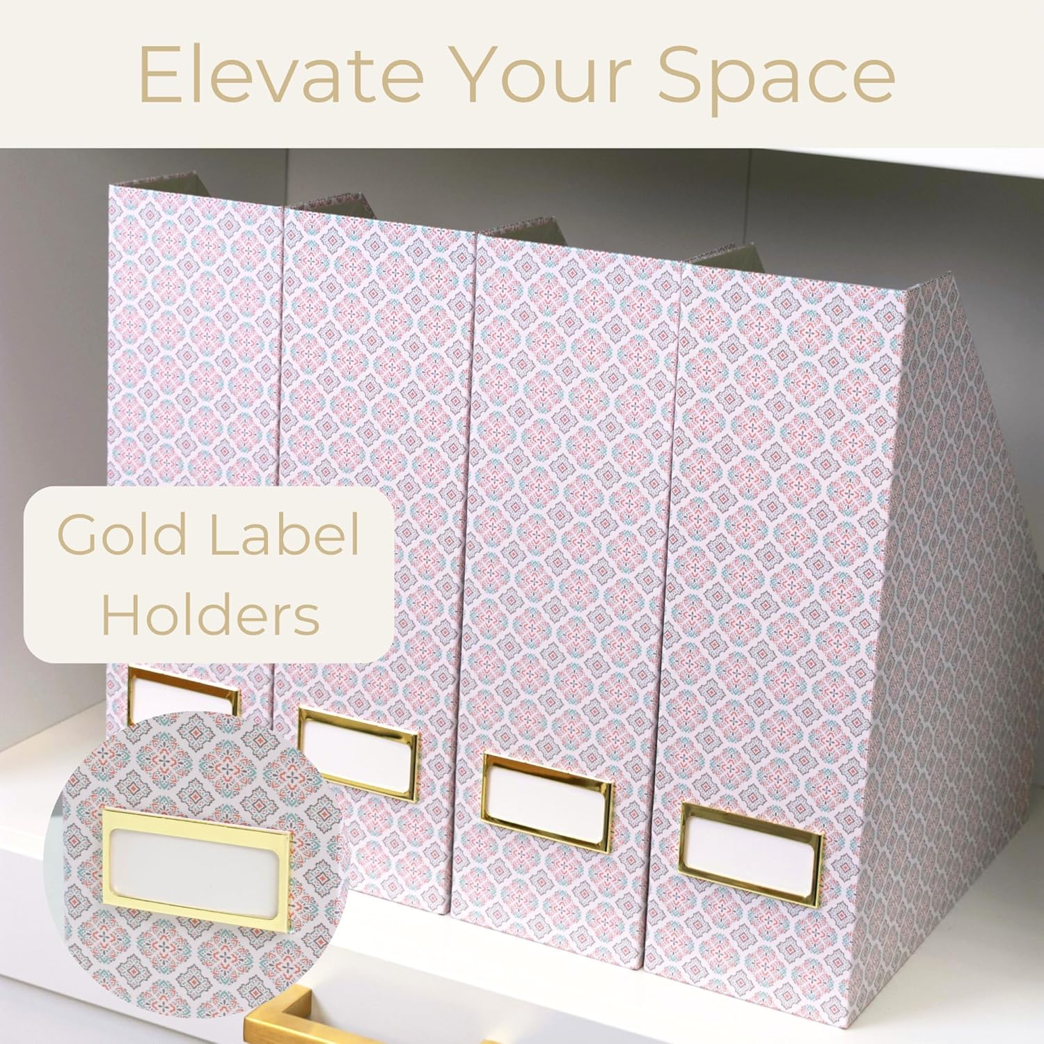 - Keep Your Space Organized: This set of 4 foldable magazine file holders with a Moroccan Tile design is perfect for organizing magazines, documents, and other essentials, ensuring a tidy workspace.