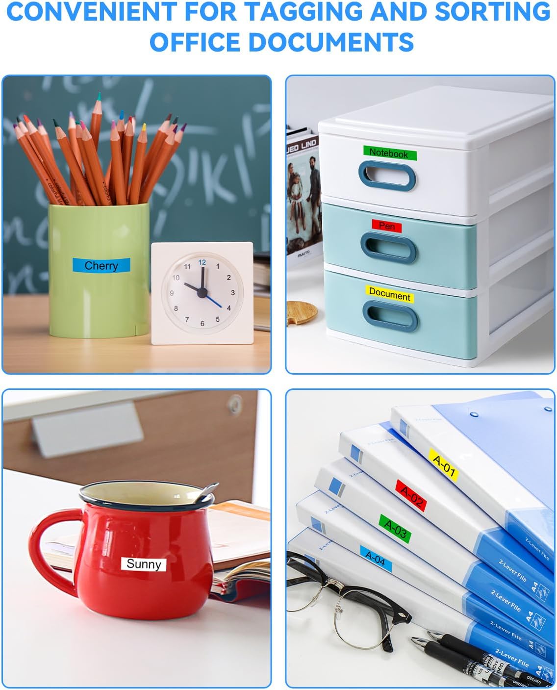 - Color: Black on White/Red/Blue/Yellow/Green; Size: 1/2 inch(12mm) x 26.2 feet(8m)