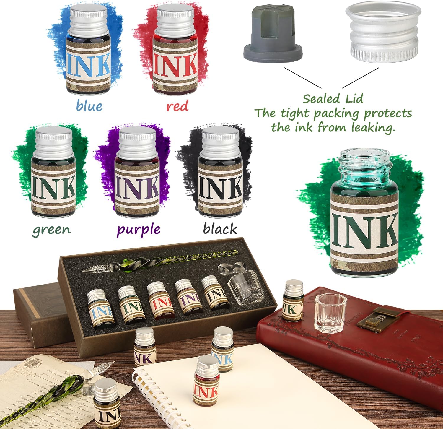 - ❤Artistic and Versatile: This signature pen is great for drawing and writing. Made of high borosilicate glass.5 bottles 7 ml colors of ink contain gold powder, which enables your handwriting and painting to become more awesome