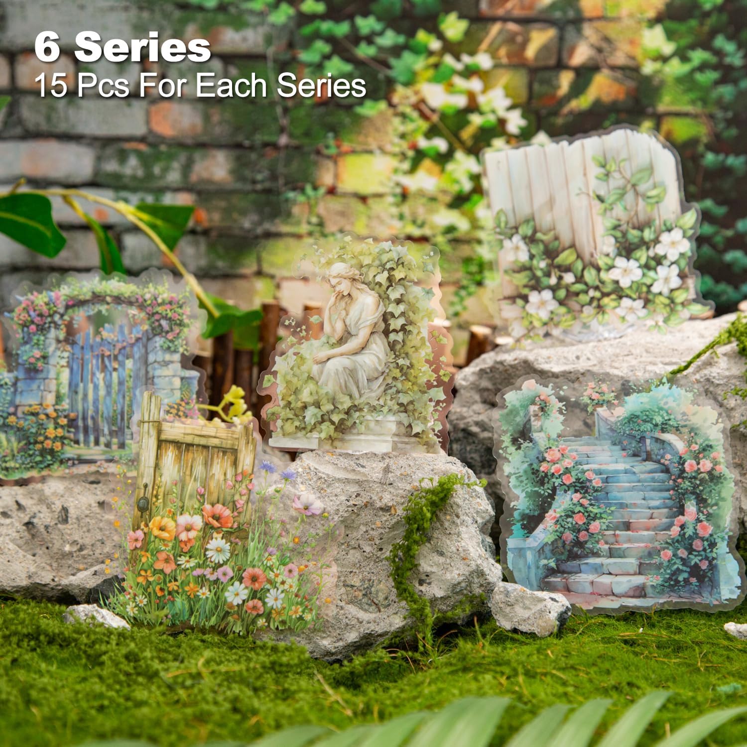 - Vintage Garden-Inspired Stickers: Our Manor Fence PET Stickers bring lush gardens and charming fences to your crafts. The set includes 90 stickers, each capturing the elegance of flowers and landscapes—ideal for DIY projects, scrapbooking, and journaling