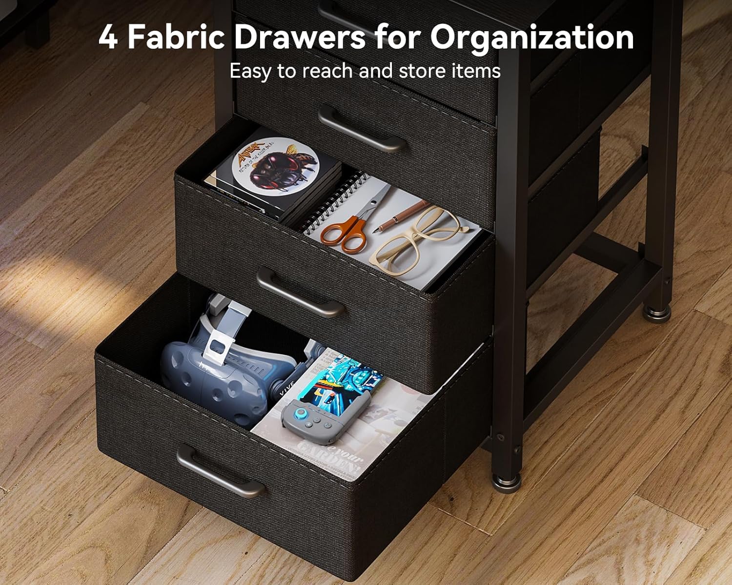 - ăAmple storage spaceă Featuring four generously - sized drawers and two iron hooks, this l-shaped desk efficiently organizes a variety of items, including files, stationery, and personal belongings. This configuration optimizes organization, allowing you to keep your work essentials in order. Not only keeps your workspace tidy, but also provides a sizable surface area.