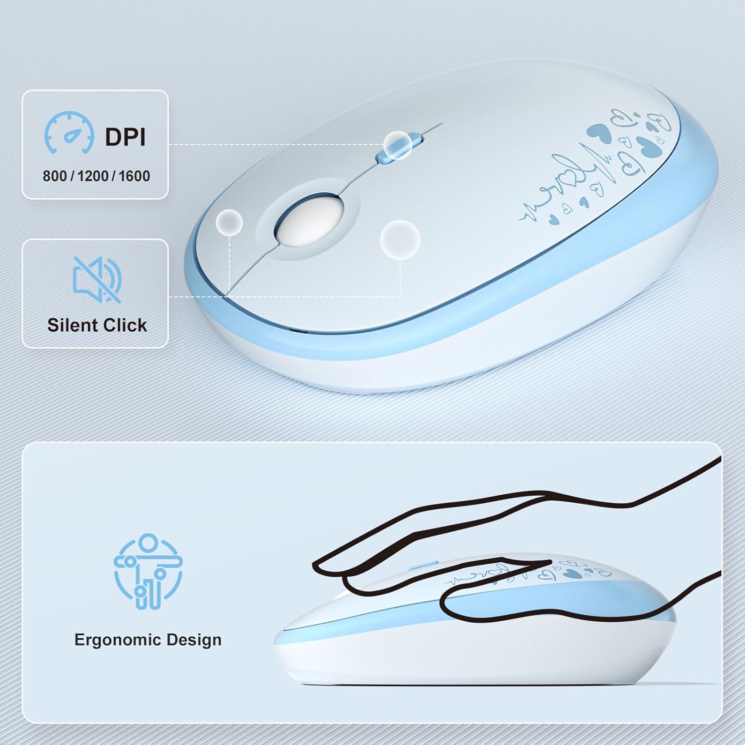 - Reliable 2.4G Wireless, Plug & Play: Experience stable, interference-free wireless connectivity up to 33 feet (10 meters). Simply plug in the USB receiver (conveniently stored inside the mouse) and you're ready to go—no setup required.