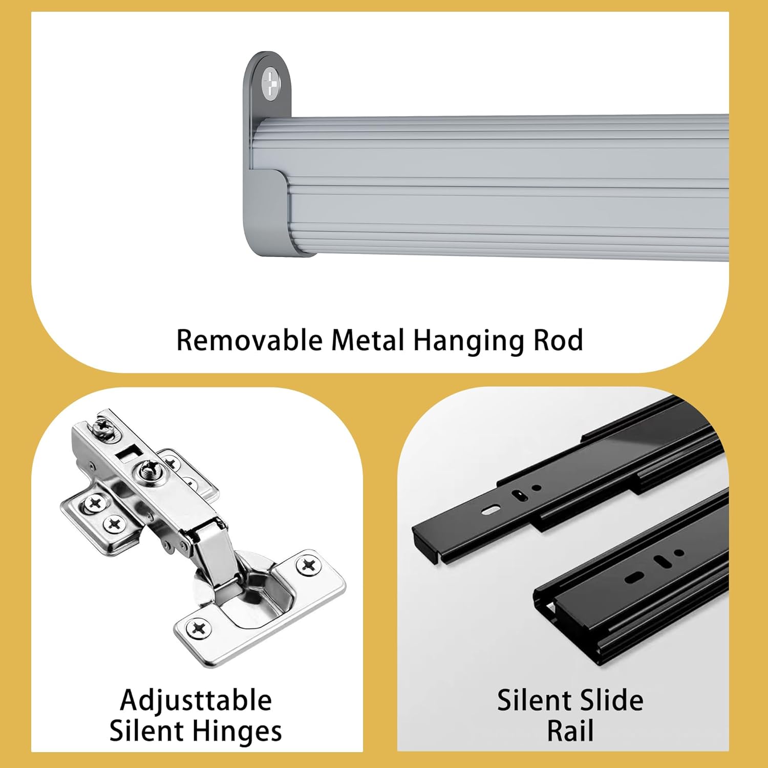 - Durable materials, easy to clean and maintain:Made from high-quality engineered wood, the surface of the white wardrobe closet with drawers is specially treated for exceptional scratch resistance and waterproof performance. During daily use, the surface of the white closet resists scratches and stains, and can be easily wiped clean. The sturdy structure design not only enhances the durability of the wooden wardrobe closet with doors but also ensures stability and safety during long-term use.