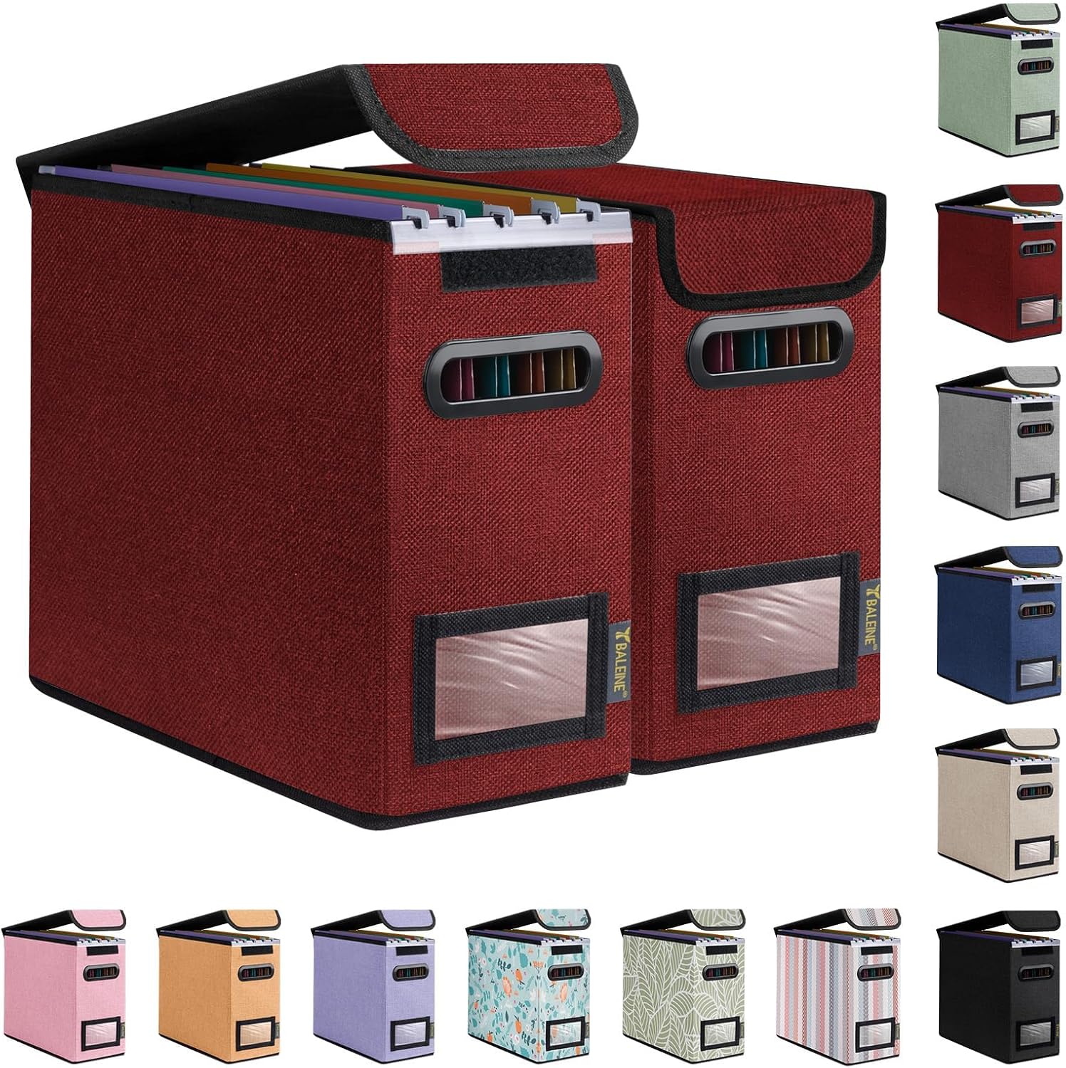 - [OPTIMIZED DESIGN] Designed with convenience in mind, our file storage box helps to elevate your efficiency and organization. The transparent label slot allows for quick identification of the contents stored inside the box. The collapsible design and sturdy handles ensure effortless storage and movement, making it convenient and easy to use