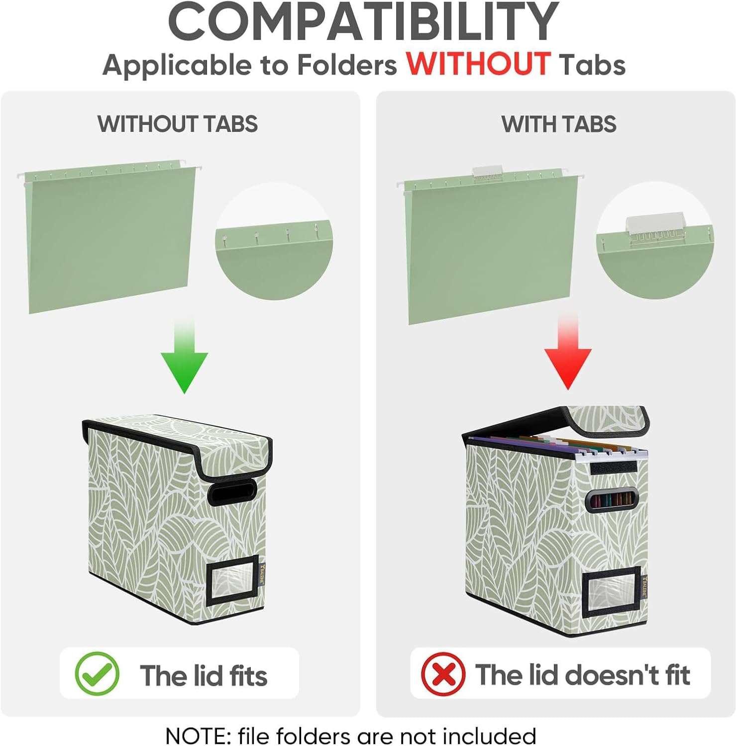 BALEINE File Organizer Box with Lid, Collapsible File Folder Organizer with Plastic Slide, Hanging File Folder Box for Office Document Storage (1 Pack, Antique Foliage, S)