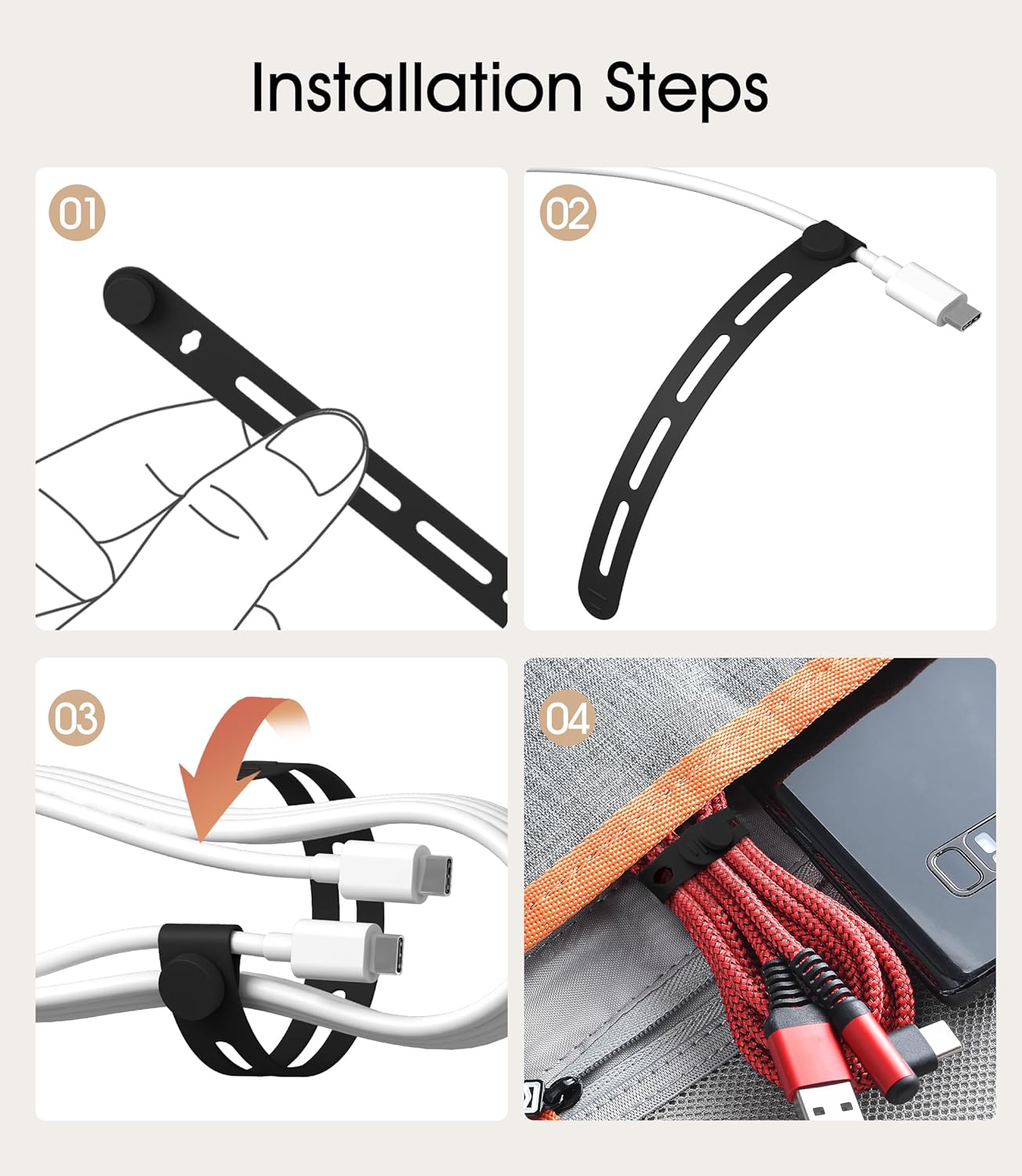 - 【Self-locking Design】Our cable strap has button and button hole design at the top that allows it to wrap around the cable, making it easy to secure the cable strap to the cable to prevent it from falling off