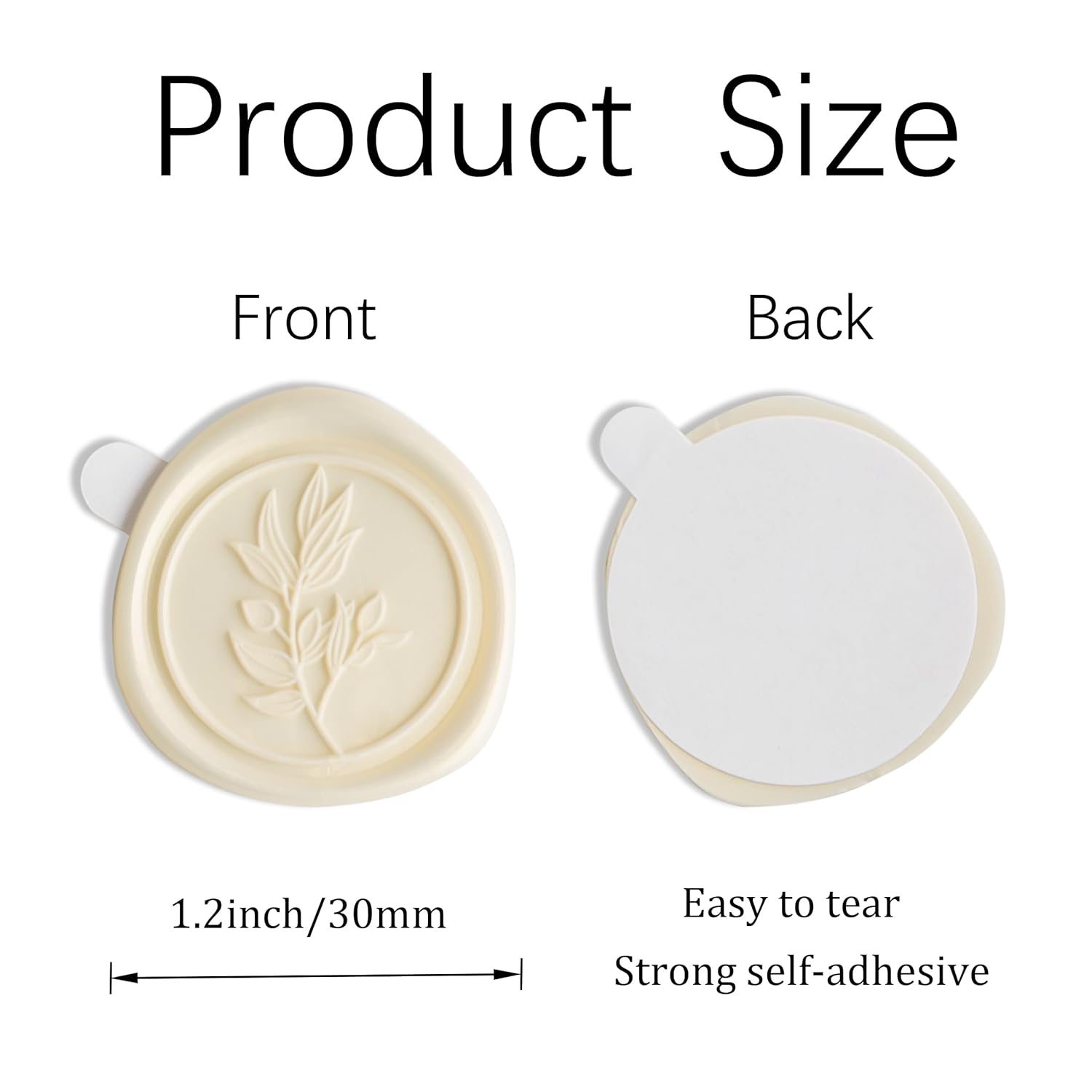 - ăSize & Weightăâ The adhesive stickers is diameter is about 1.2 inches/30mm and with almost the same size of adhesive on the back. Weights about 0.18oz per seal and may add weight to envelopes.