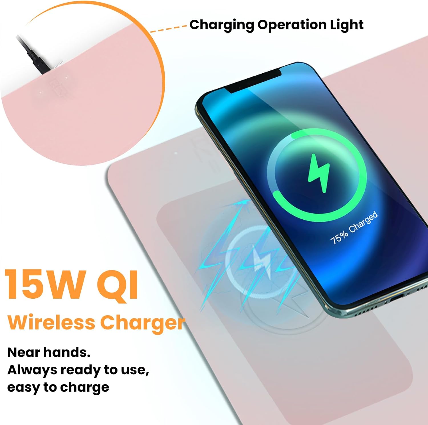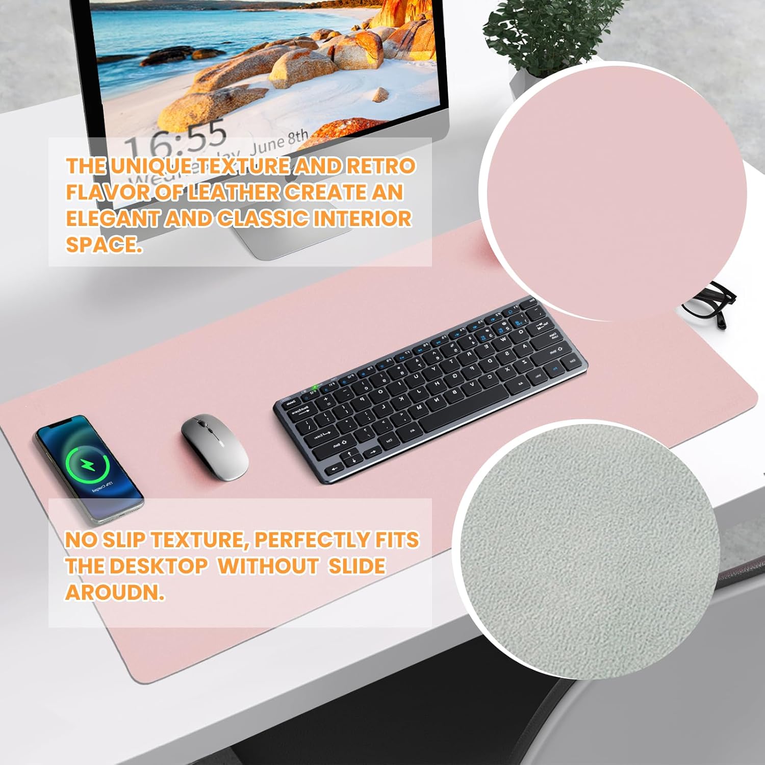 Desk Mat Wireless Charging Mouse Pad Large 32x16 Journey Desk Pad Mat with Wireless Charger Waterproof Pink Leather Computer Mat with Phone Charger Mousepad Non-Slip for Keyboard and Mouse