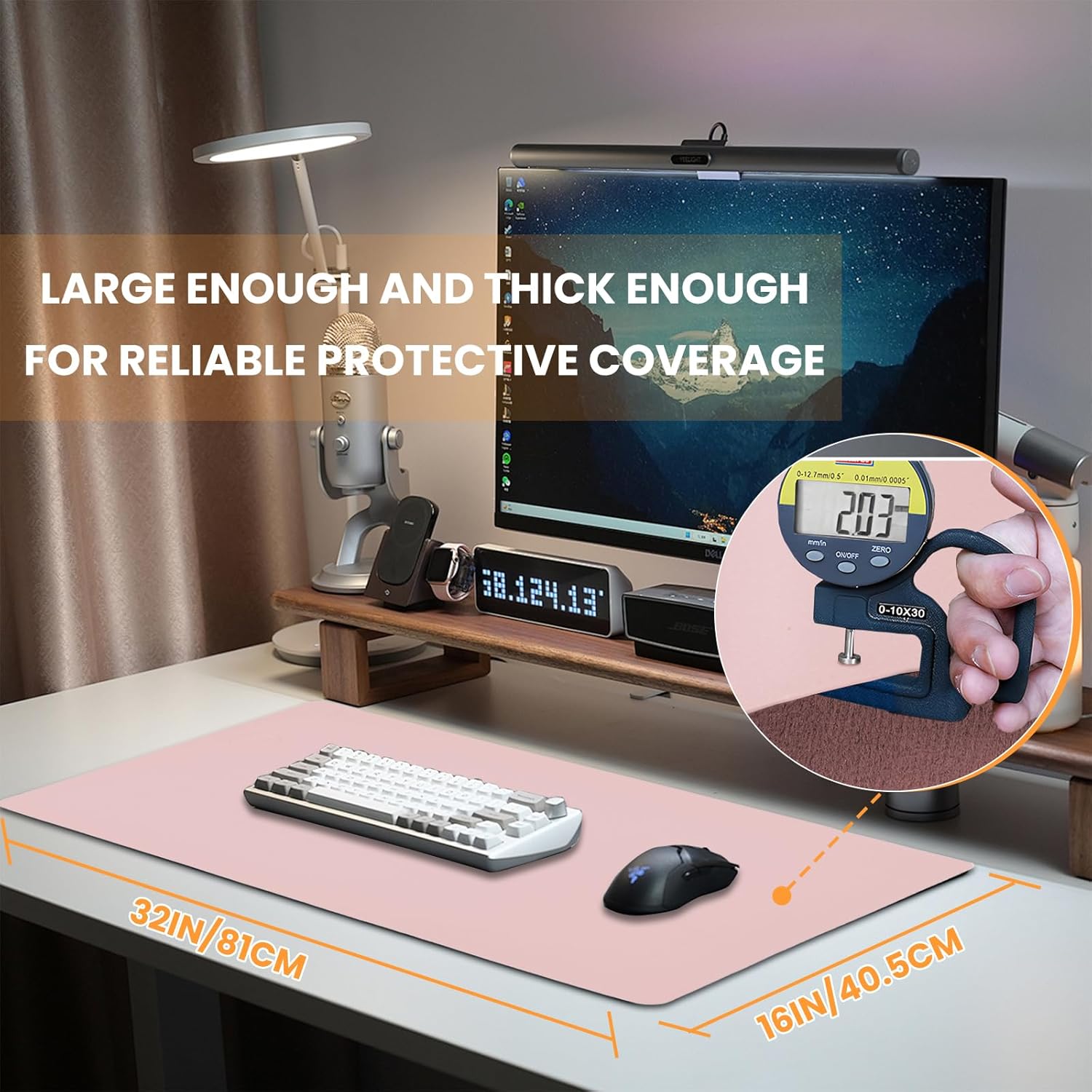 Desk Mat Wireless Charging Mouse Pad Large 32x16 Journey Desk Pad Mat with Wireless Charger Waterproof Pink Leather Computer Mat with Phone Charger Mousepad Non-Slip for Keyboard and Mouse