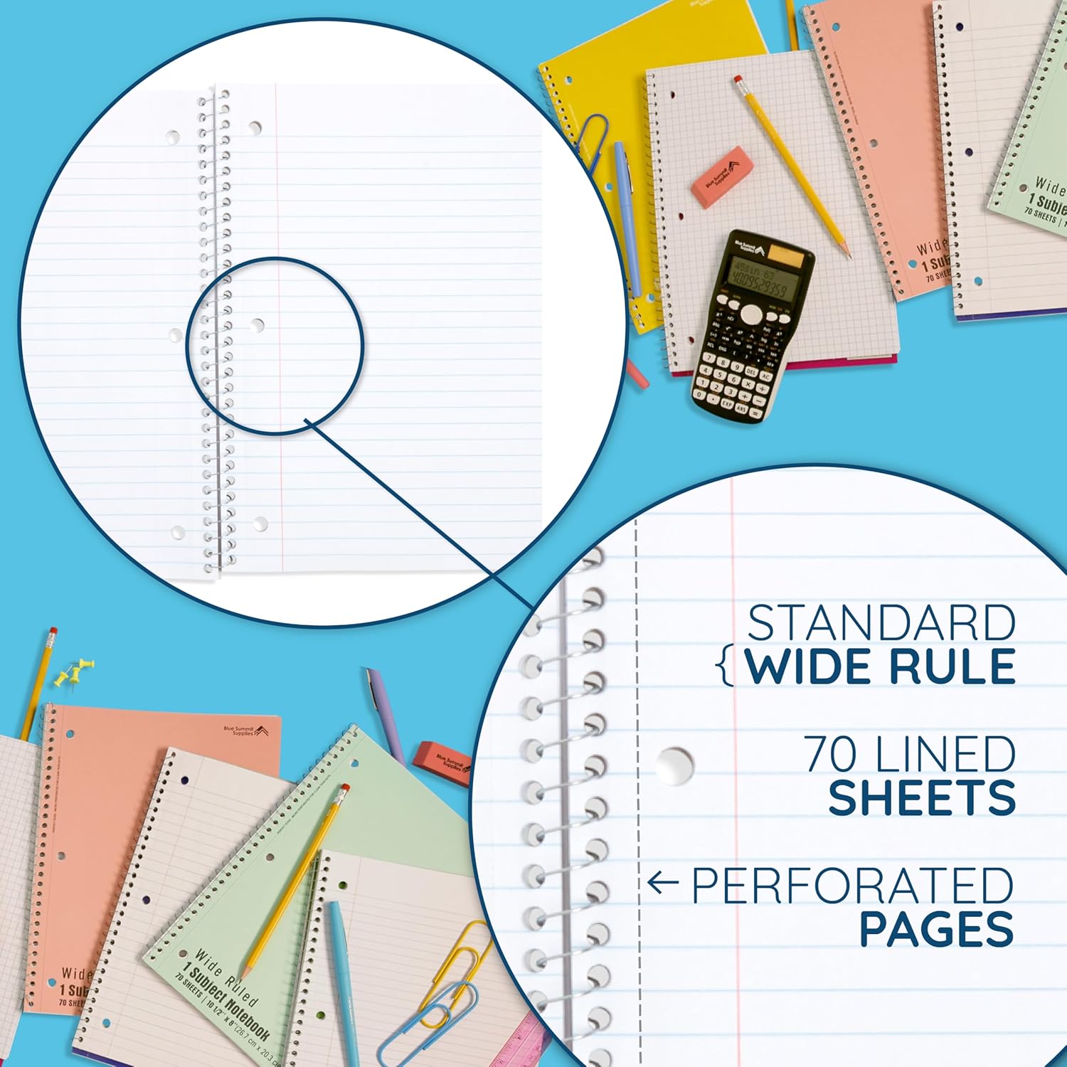 - Classic Wide Ruled Format – Each school notebook features clean, wide ruled lines, a sturdy spiral binding, and perforated pages—perfect for neat note taking or turning in assignments.