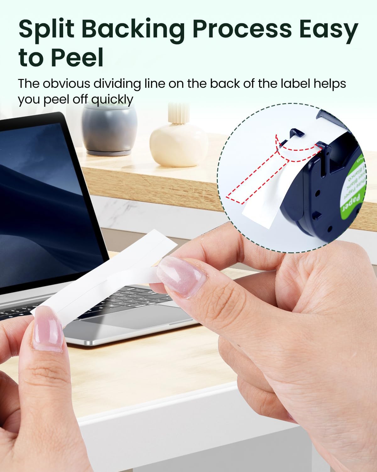 - Easy to Use: The 91330 label maker tape compatible with dymo letratag label maker refills is self-adhesive; Split-backing so easy to peel. And there is nothing left when the labels are peeled