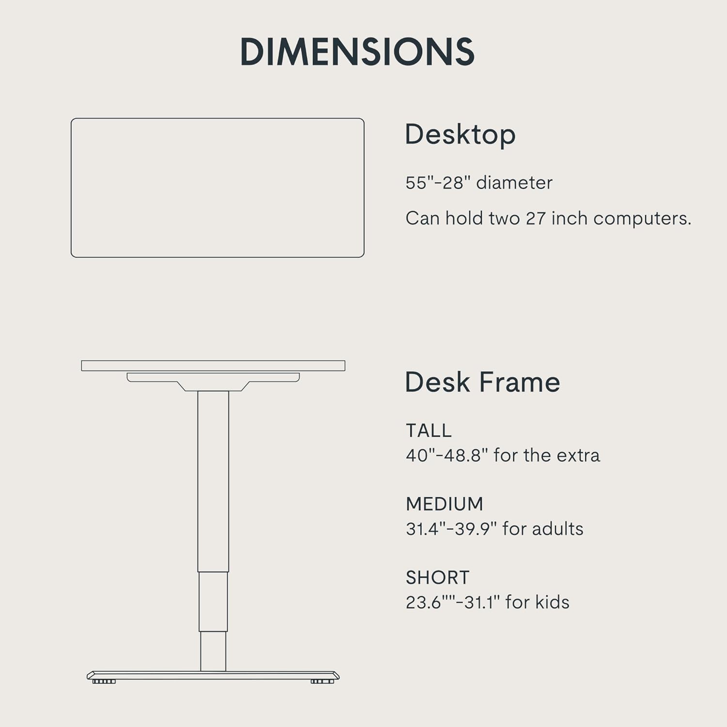 - 【3-STAGE LIFT SYSTEM】 Compared to the 2-stage lift system, the 3-stage standing desk offers a 30% wider range of lifting space, from 23.6” to 48.8”. Whether it's a 3’2” child or a 6’5” adult, you can adjust the desk height to suit everyone comfortably.