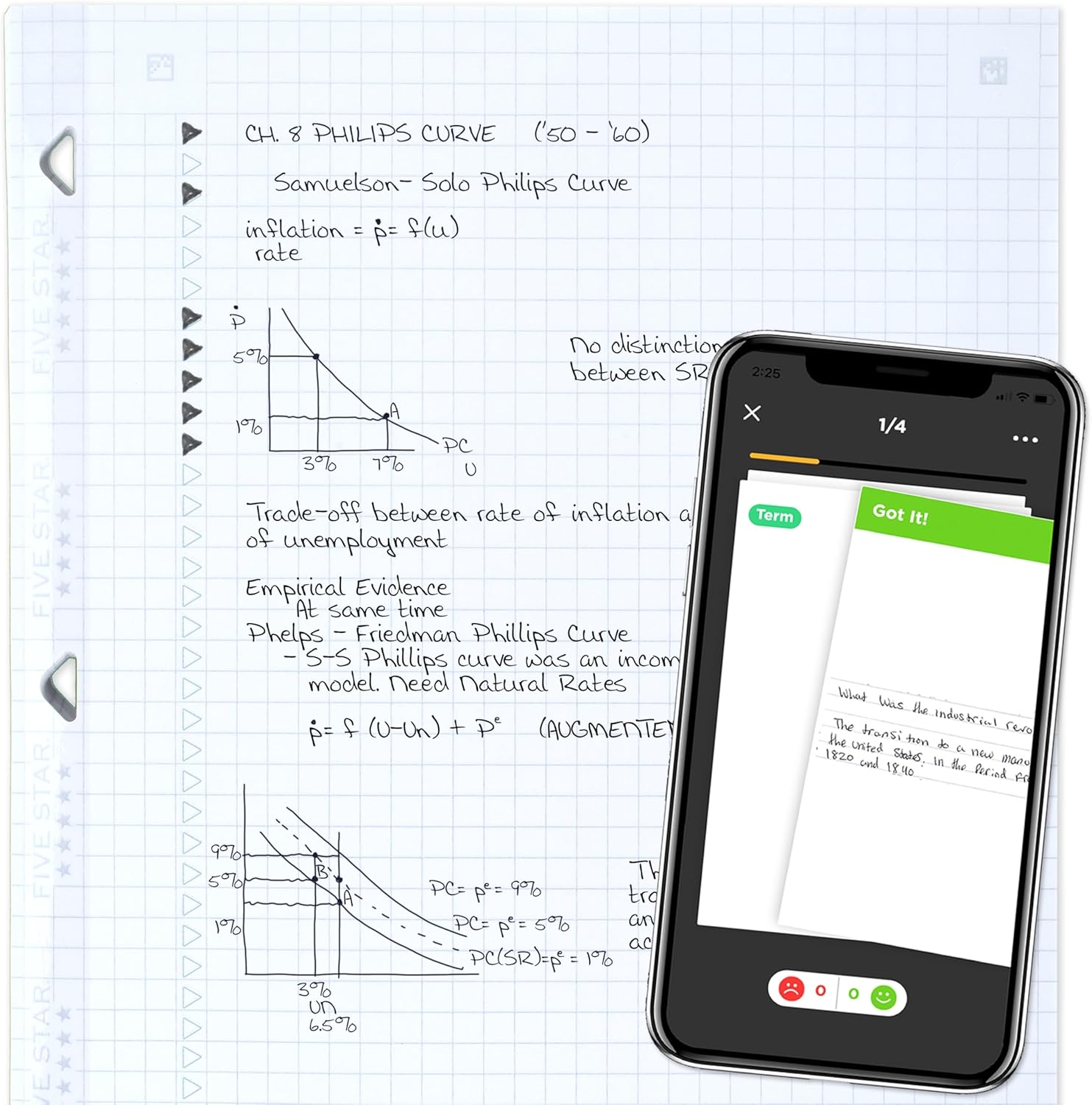 Five Star Loose Leaf Paper + Study App, Graph Ruled Filler Notebook Paper, Reinforced, Fights Ink Bleed, 8-1/2" x 11", 200 Sheets (170055-ECM)