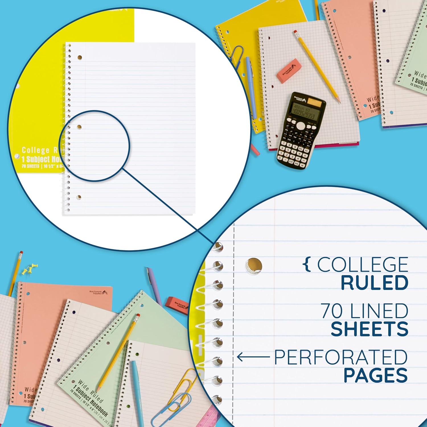 - Clean and Consistent Writing Surface – Each 1 subject spiral notebook college ruled includes 70 pages of smooth, lined paper—ideal for writing notebooks, schoolwork, or journaling with minimal bleed-through.