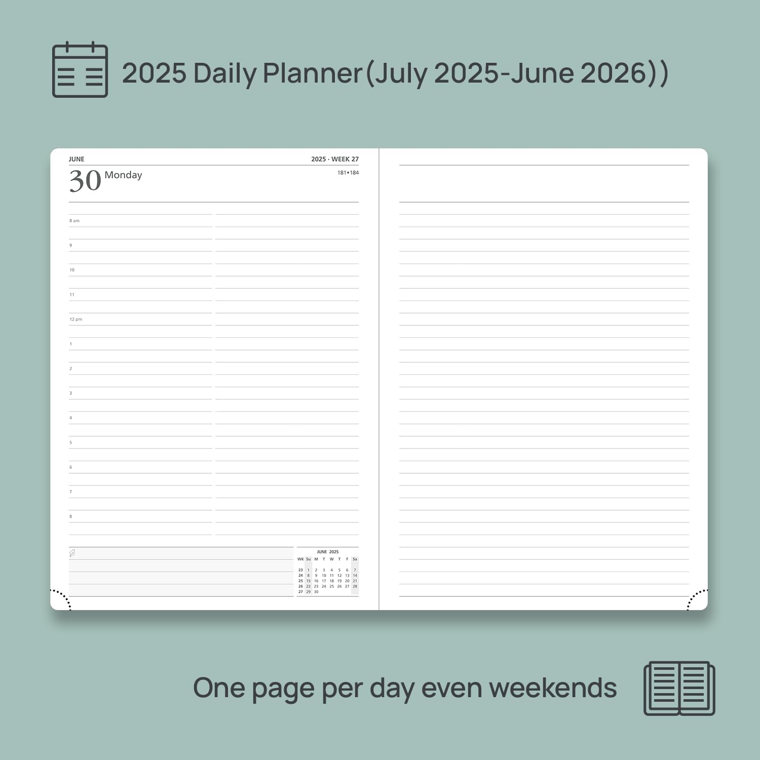 - ONE PAGE PER DAY, INCLUDING WEEKENDS - This daily planner (July 2025 – June 2026) offers 365 daily pages, each with ample space for hourly scheduling. It keeps your busy daily routines organized and manageable.