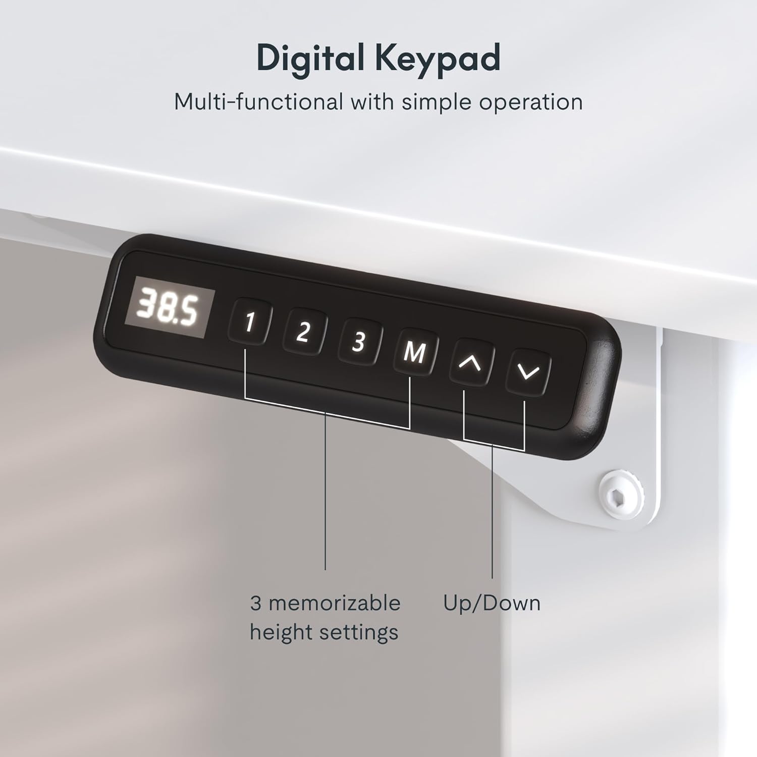 - ăLED CONTROL PANELă The control panel with a memory function allows you to easily adjust and save your preferred desk height settings. (Please note that the three height keys need to be pressed all the time when in use)