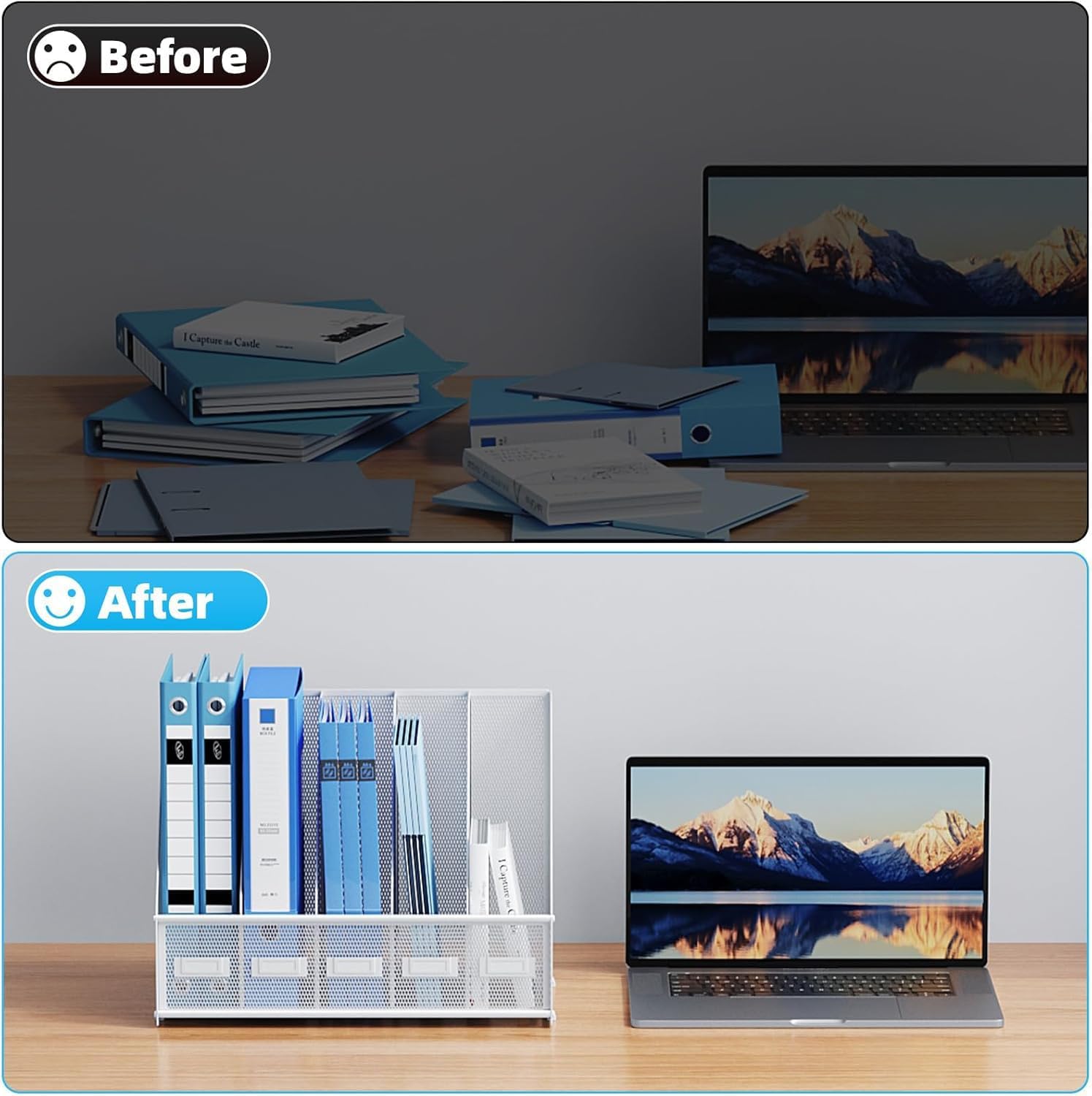 - 【High-Quality Material】The mesh desktop file organizer is made of lightweight and durable metal mesh, reinforced with a solid steel frame, rust-proof and extremely durable for long-lasting strength.