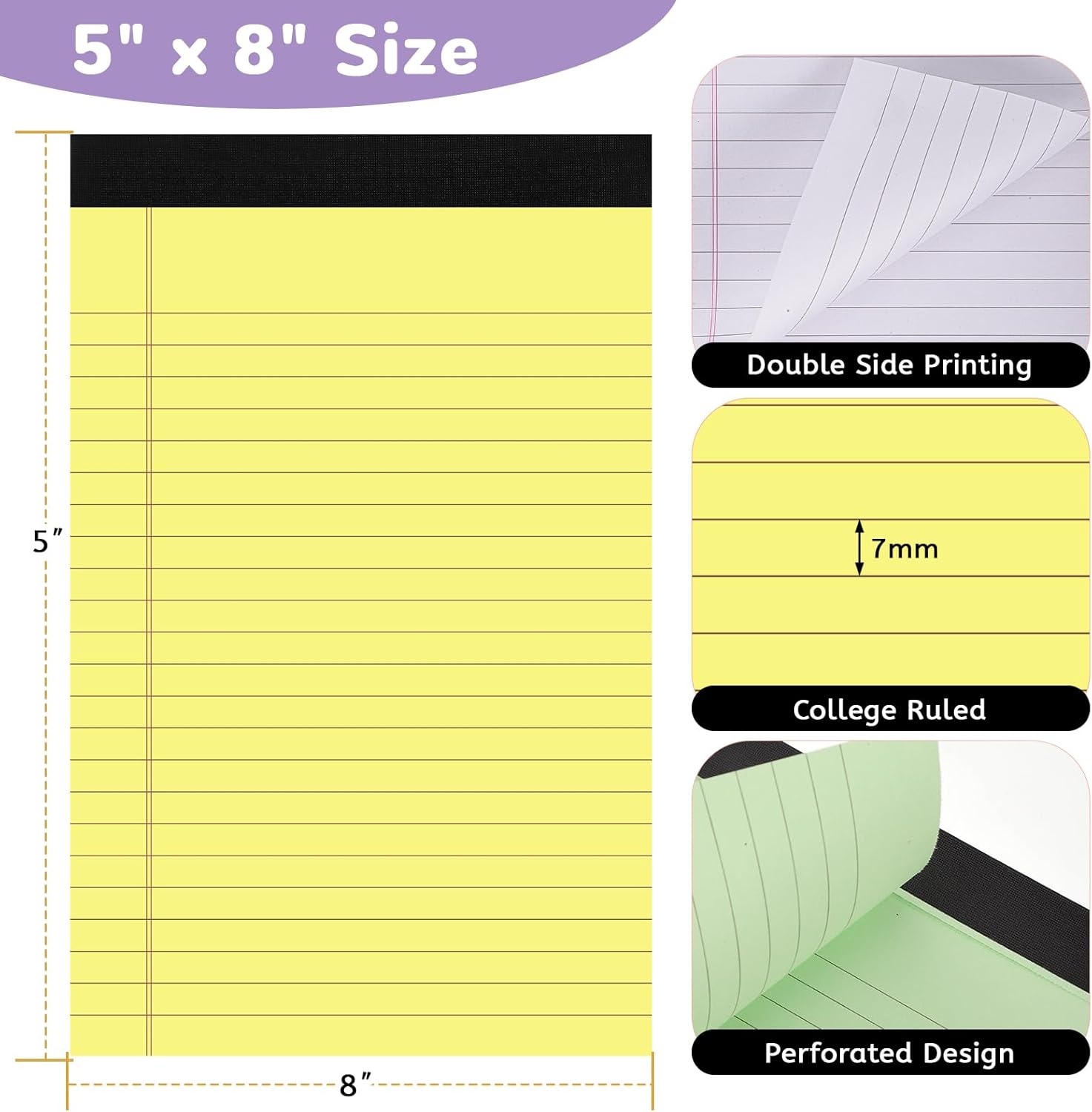 - 【180 Sheets Lined Legal Pads】You will get 12pack lined legal pads in 30 sheets, total 180 sheet, 5x8 inch in size, 7mm college ruled writing pad, sufficient quantity and reasonable space to meet your study and work needs