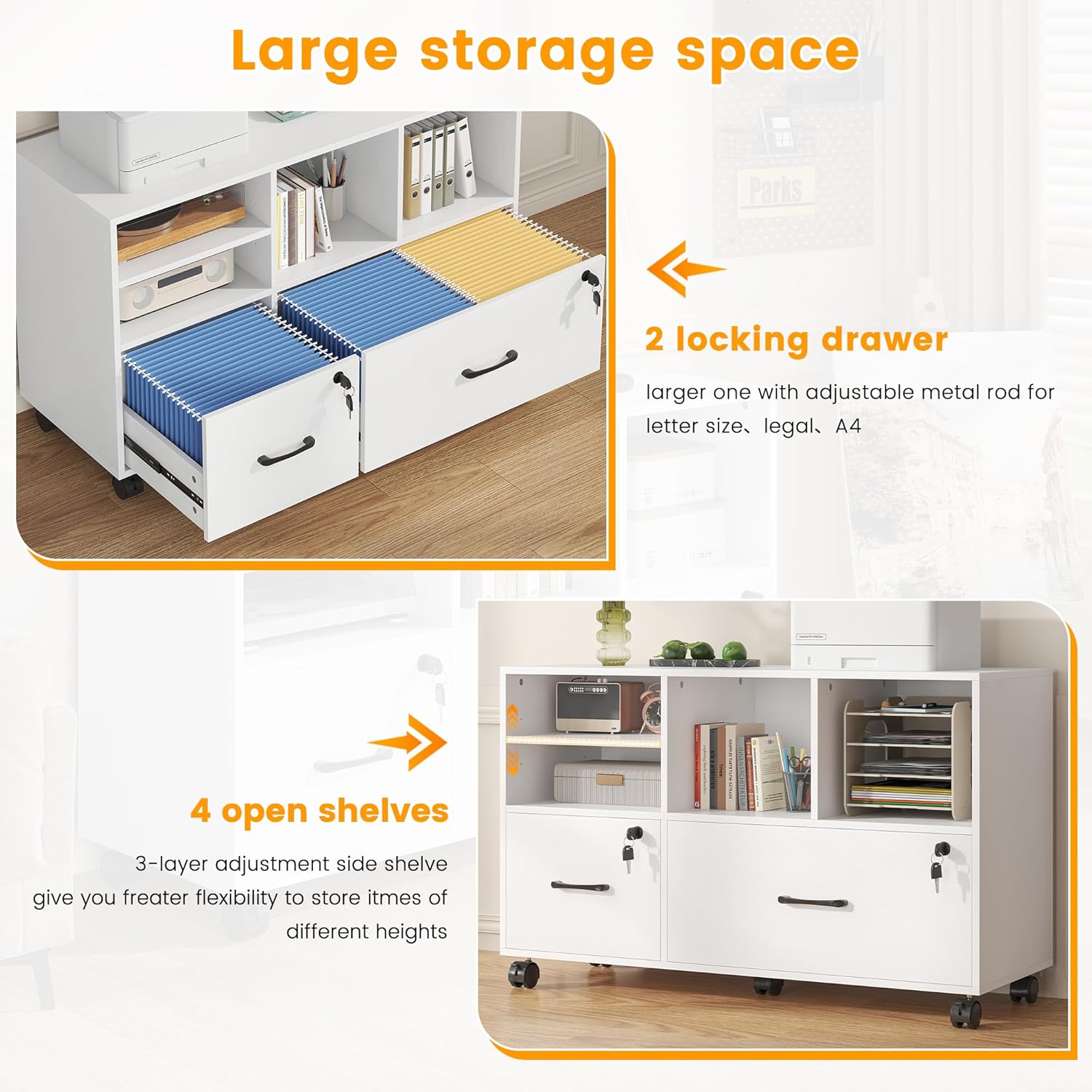 - Lockable & Movable: Both drawers of this filing cabinets for home office are equipped with locks so you can important documents. Plus, this lateral file cabinet is equipped with 2 lockable casters, which means you can move it wherever you like