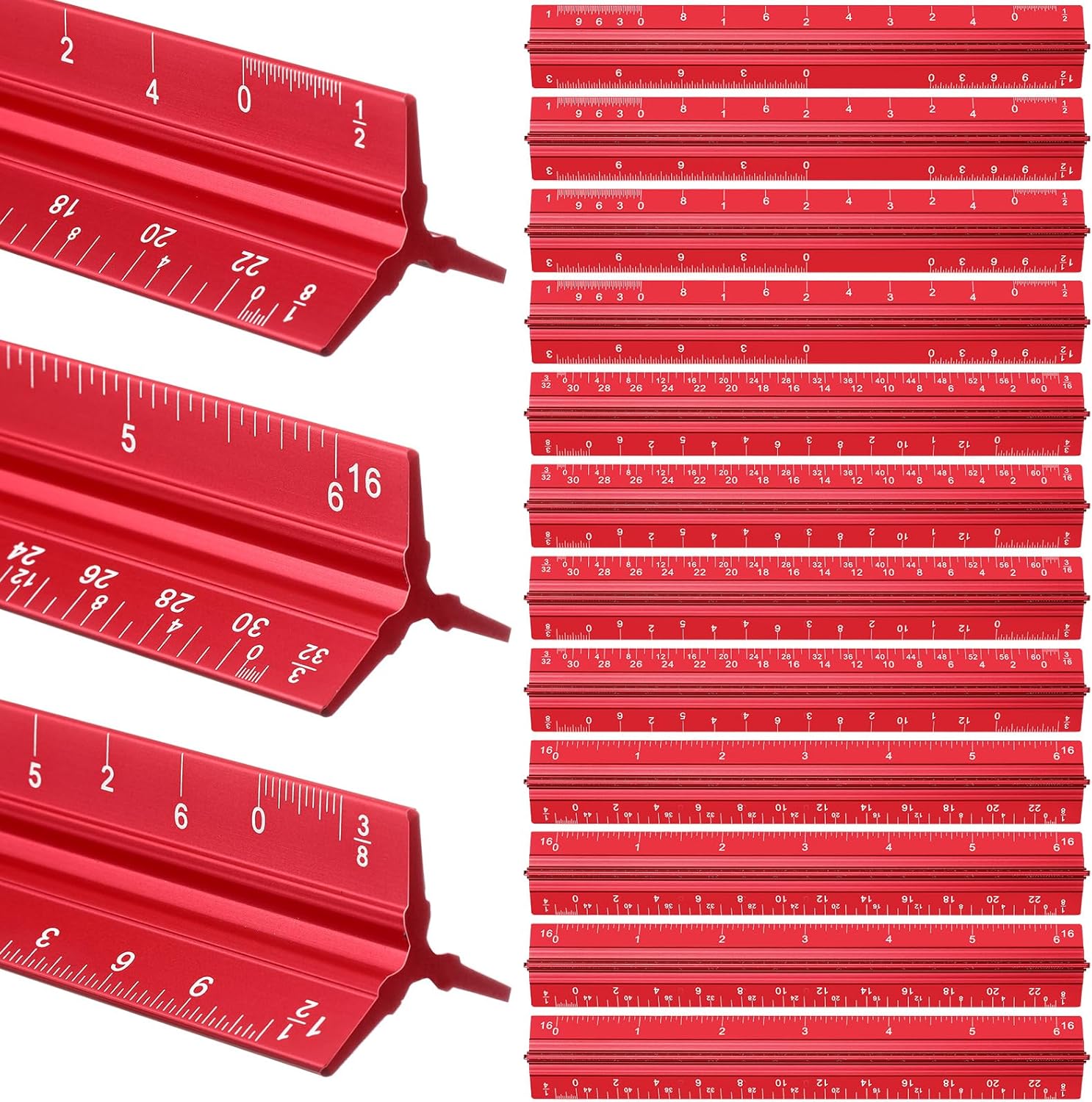 Fumete 12 Pack 6 Inch Architectural Engineering Scale Rulers Small Scale Ruler Pocket Size Scale Ruler Construction Rulers Imperial Measurements for Architects Engineering, Draftsman Drawing(Red)