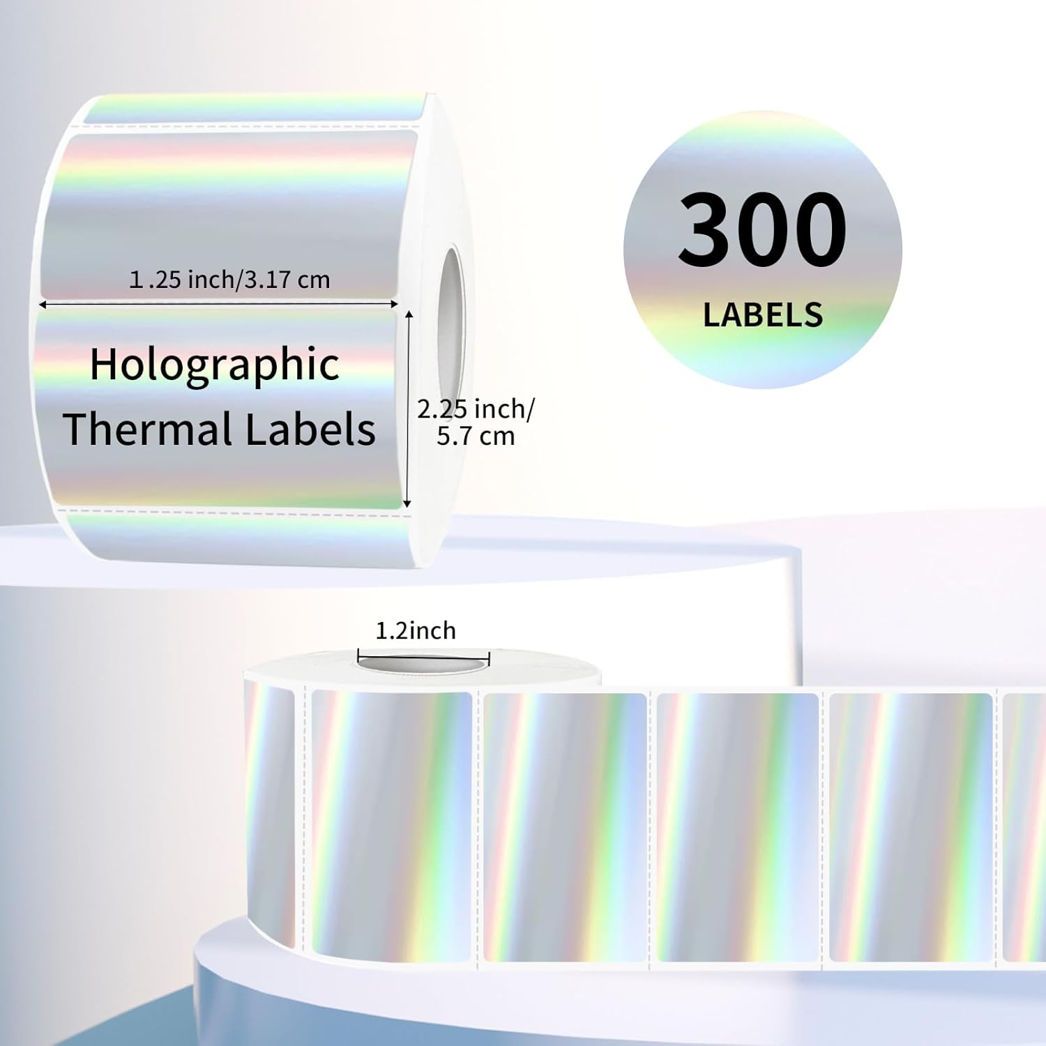 - Holographic Thermal Sticker Labels: Printed on rainbow metallic vinyl, the color of the surface of the sticker can be changed under the light with the move, which is beautiful and charming! Our holographic stickers offer an amazing visual experience like and leave a remarkable impression