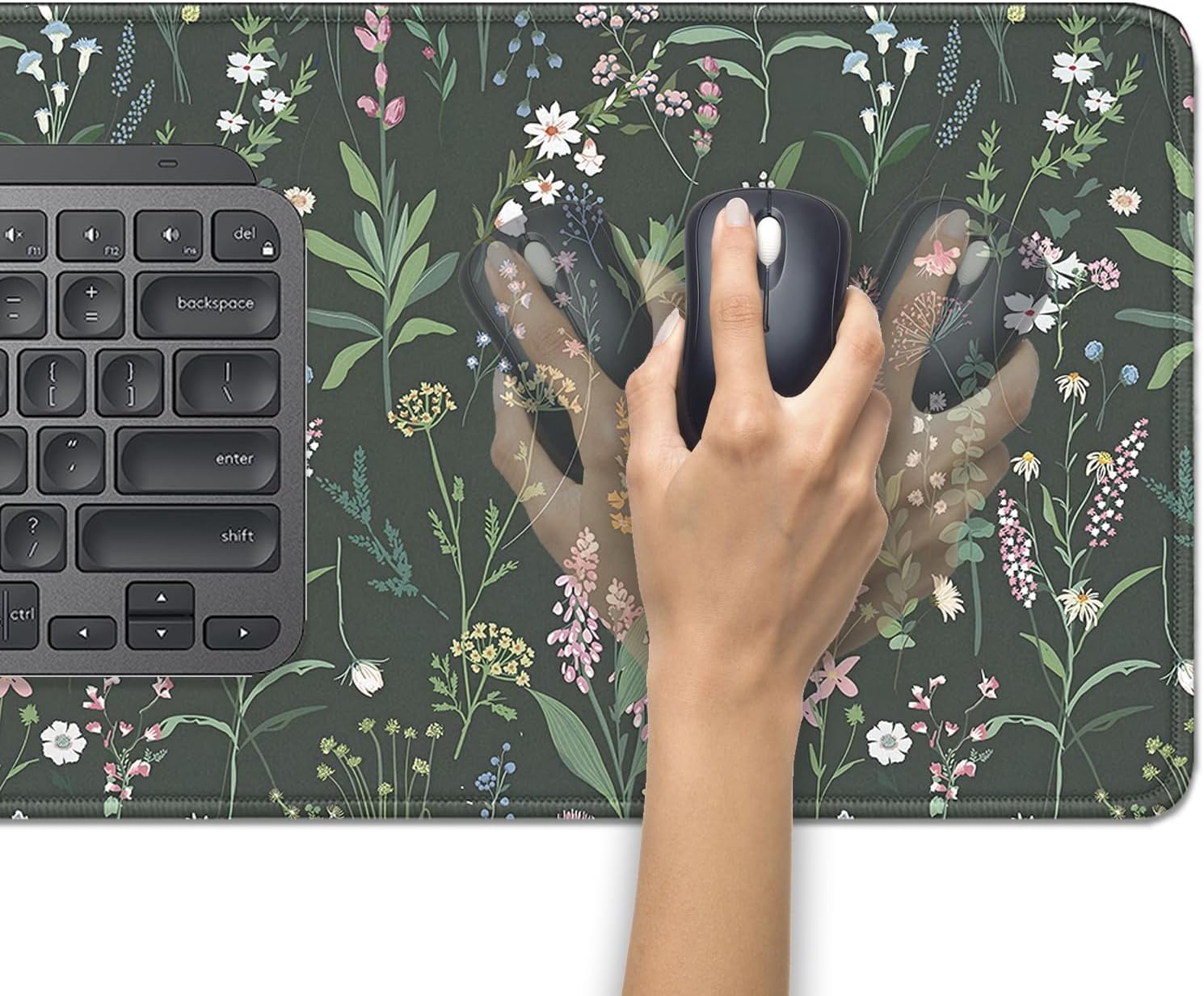 Green Plant Floral Mouse Pad,Large Flowers Mousepad Desk Pad with Stitched Edges,Non-Slip Waterproof Rubber Base Mouse Mat for Office Computer Keyboard Laptop Home(27.5x11.8 in)