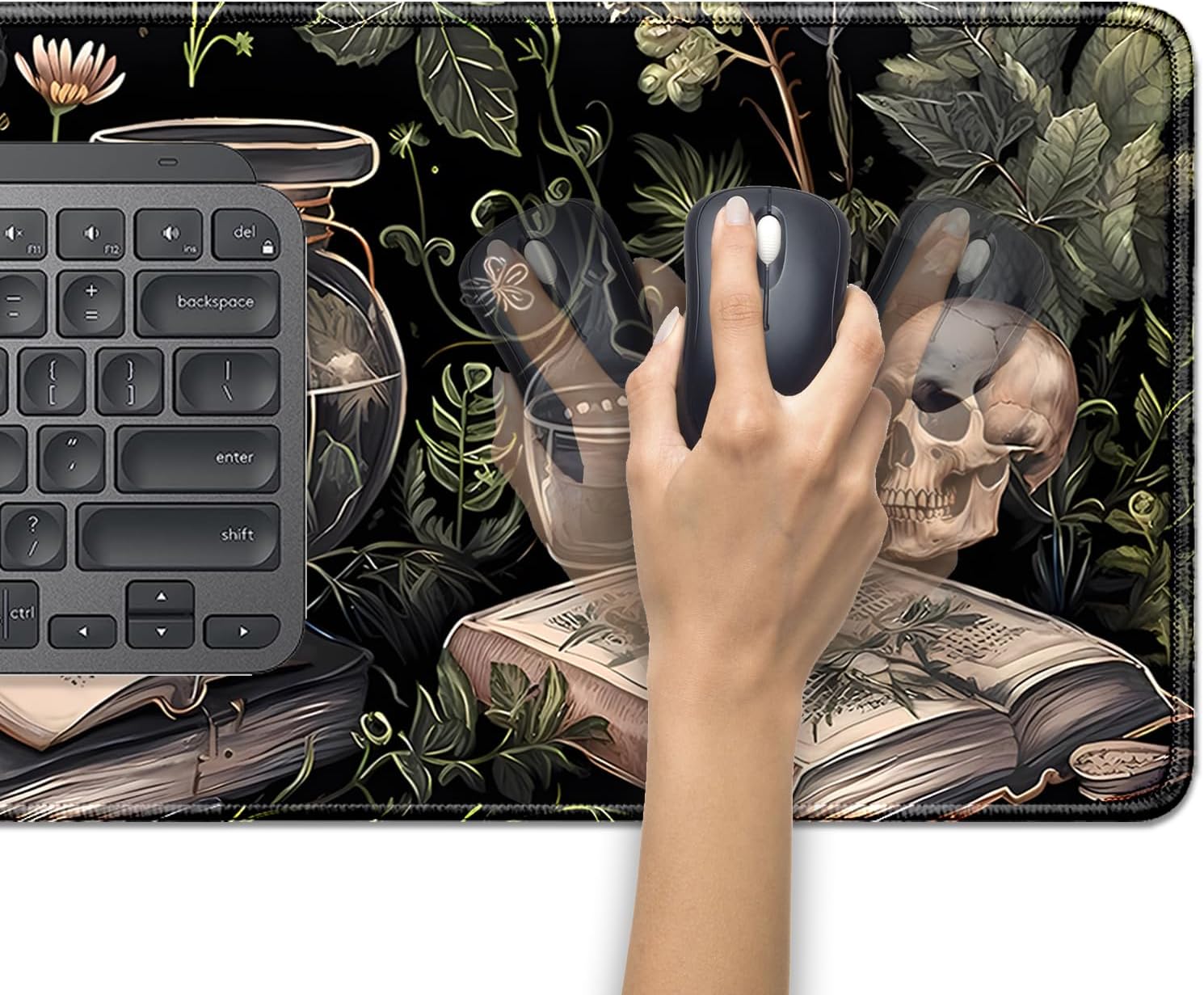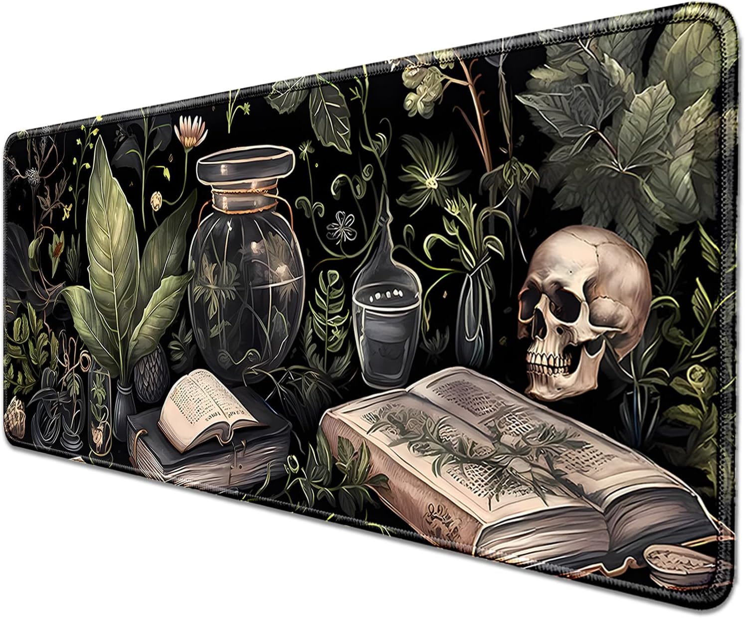 Dark Academia Witchcraft Mouse Pad,Extended Skull Magic Book Mousepad Desk Pad with Stitched Edges,Non-Slip Waterproof Rubber Base Mouse Mat for Office Computer Keyboard Laptop Home(27.5x11.8 in)