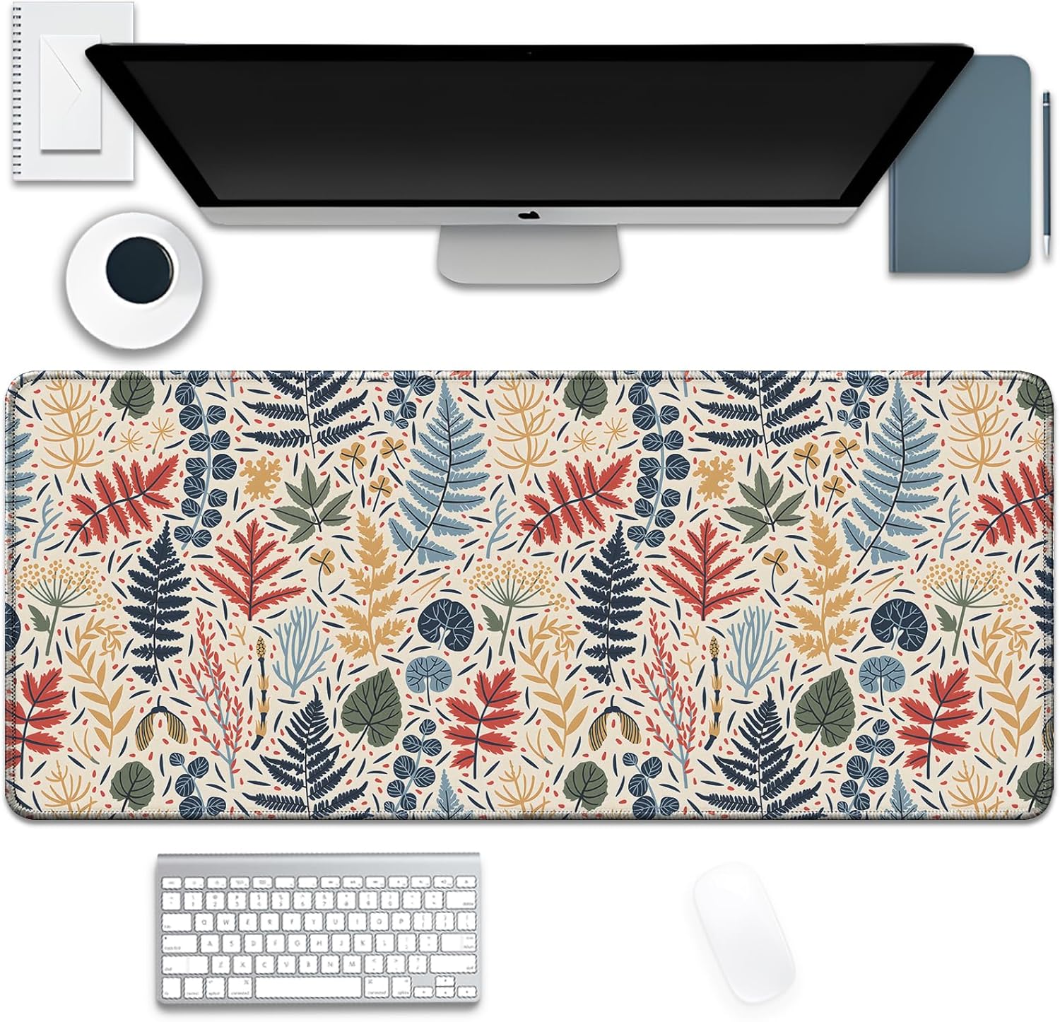 Bohemian Leaves Mouse Pad,Large Vintage Abstract Mousepad Desk Pad with Stitched Edges,Non-Slip Waterproof Rubber Base Mouse Mat for Office Computer Keyboard Laptop Home(27.5x11.8 in)