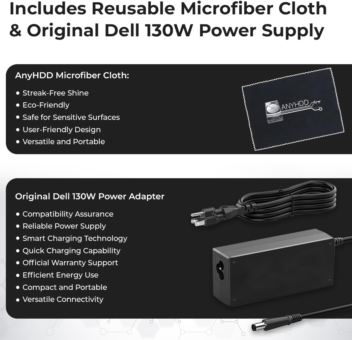 - Package Includes - Dock D6000S 130W Renewed, 1x USB Type-C Cable, 1x 4K HDMI Cable, 1x 4K Displayport Cable, Original 130W Power Adapter, Microfiber Cloth